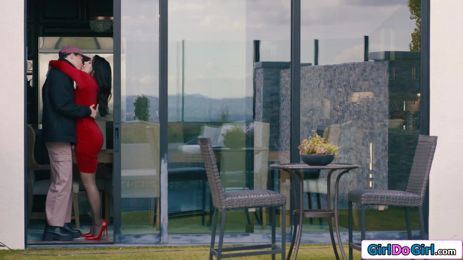 Busty petite Italian lesbian cheat Valentina Nappi meets her small tits mistress Katrina Colt.The big boobs brunette milf kisses her babe and gets her pussy licked.Katrina rides on the hotties strapon and both ladies scissorfuck towards an orgasm