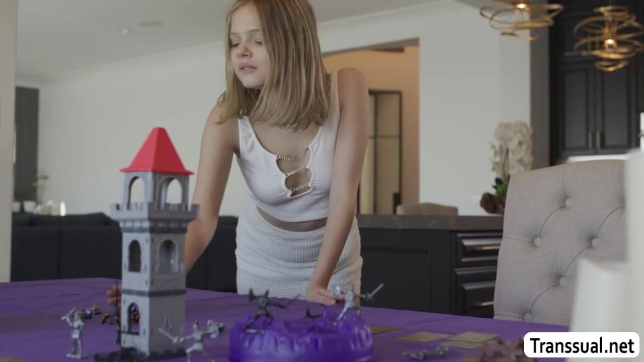Slut Coco Lovelock hide under the table while two TS Brittney Kade and Emma Rose are playing.She throats their hard shecock passionately and after that,they lick and fuck her wet pussy so deep and fucking hard.