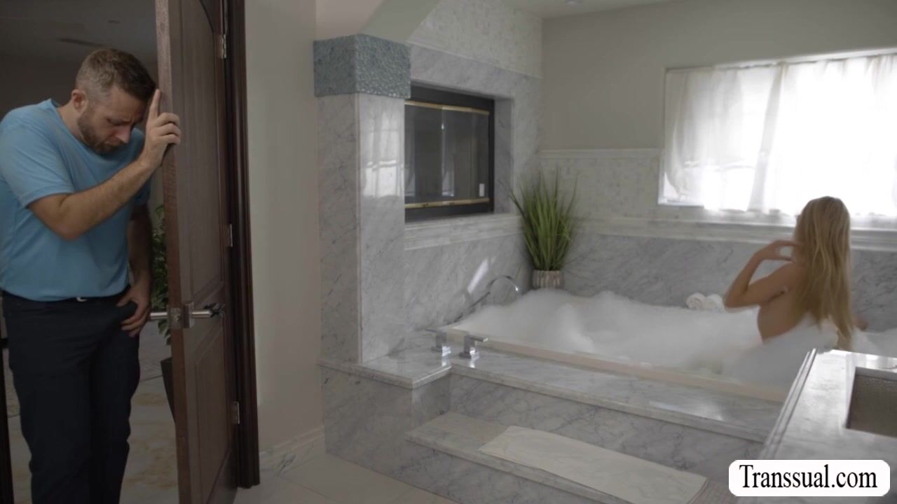 Pervert Joel Someone watches the TS girlfriend of his friend Tori Easton in the bathroom while getting naked.After that,he joins her on the bathtub and they start kissing each other.Next is,he lets her suck his dick before he fucks her ass.
