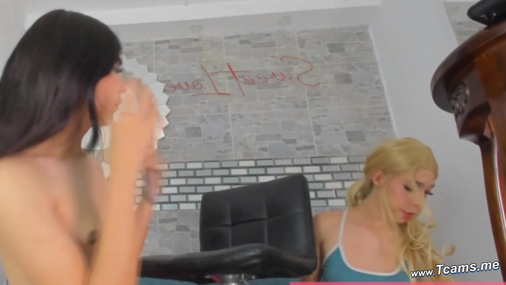 Look at these two shemales enjoying their webcamshow by sucking and touching each other's flat tits. The other shemale is stroking the thick cock of her partner. She doesn't just masturbate it but also suck it. Her mouth is wide open in eating knowing how big it is! They are surely enjoying each other's company. Her cock looks so huge and full. They really look like true goddesses. Enjoy masturbating while these two shows the lustful way of stroking a babecock. The one showing her cock has tattoos on her body maki