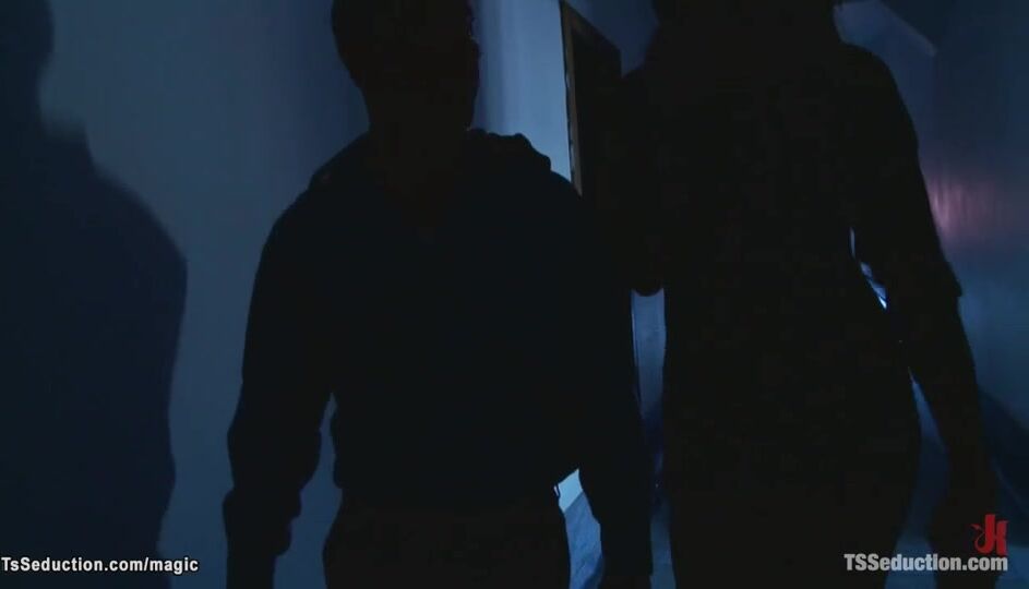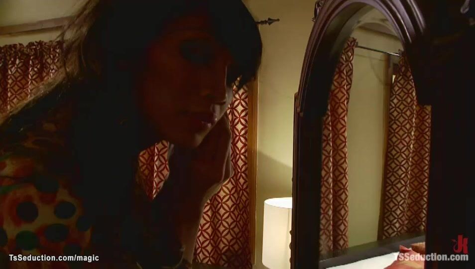 Brunette Shemale Fucks Handcuffed Man