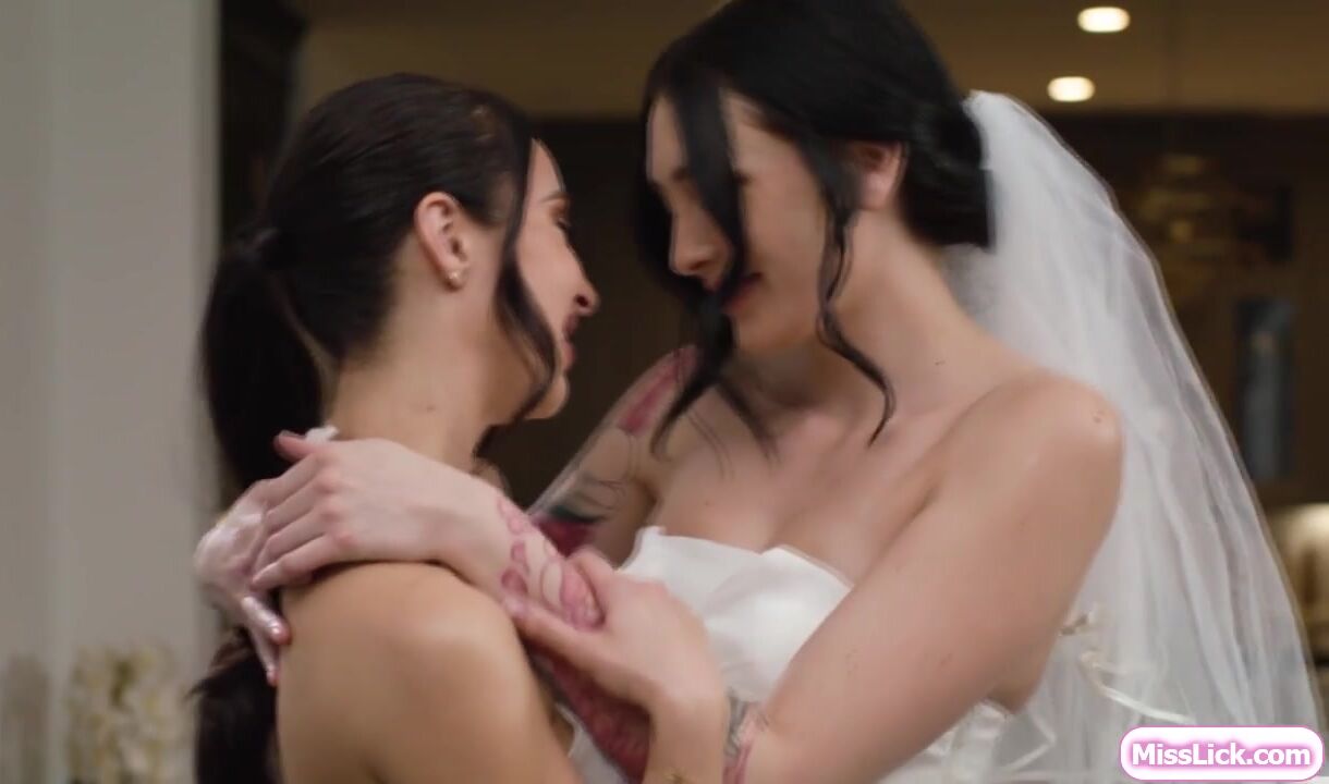 Lesbian babe Melissa Stratton comforts her fiancee Charlotte Sins after the wedding reception got canceled.Shes making her feel better by kissing and caressing her big tits.The milf removes her gown and goes on licking and fingering her wet pussy