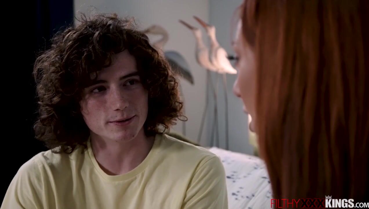 Stepmom Lauren Phillips caught stepson staring at her big tits while giving her massage.She lets him touch it and even suck on them.The guy goes down pussy licking the big tits milf.After giving blowjob, the cougar lets him fuck her hairy cunt
