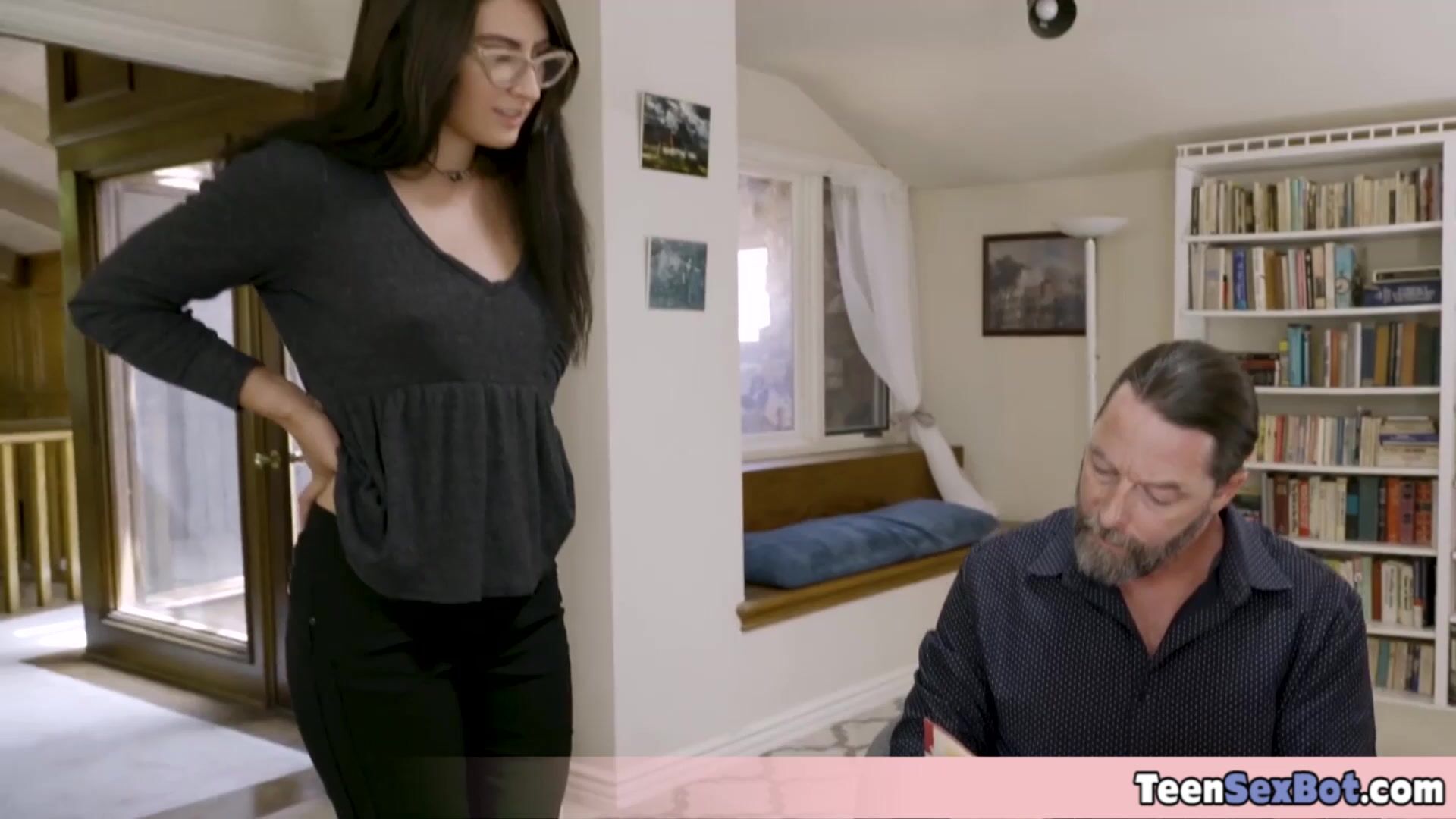 Geeky stepdaughters wanted to try an older cock and Pops is more than happy to provide their pussies with his cum