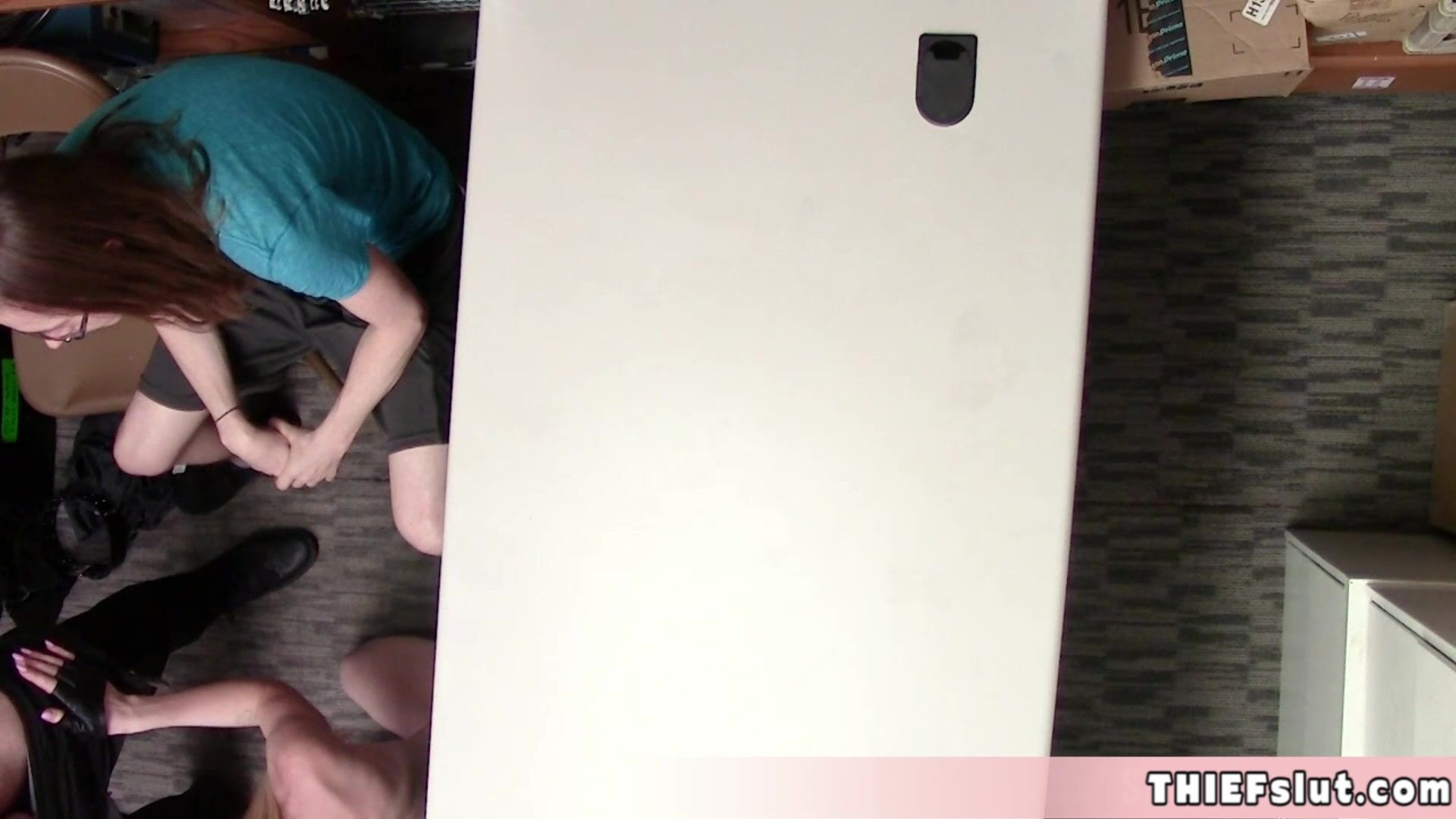 Skinny thief fucked in front of her BF