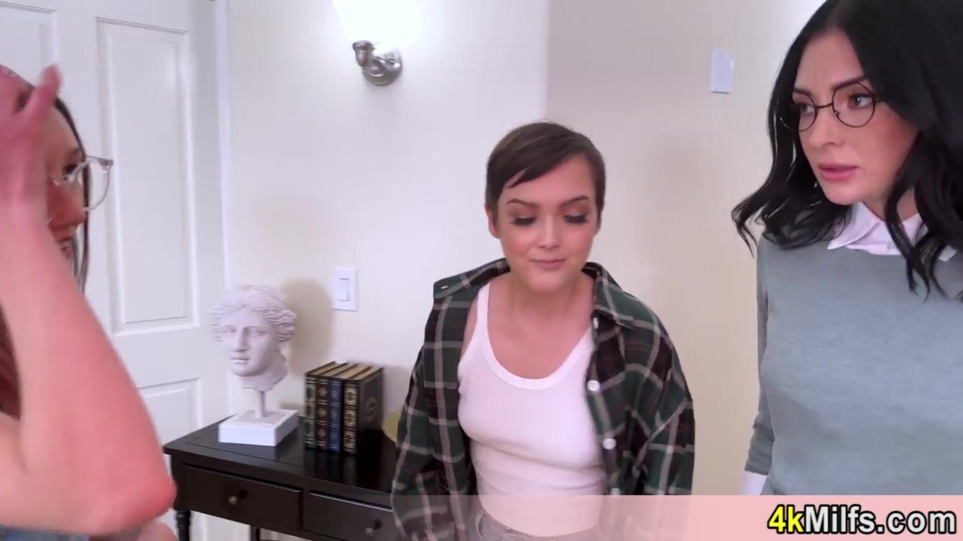 Blonde stepma decided to teach her pupils about succesfull sex and blowjobs Lets hope they are good students