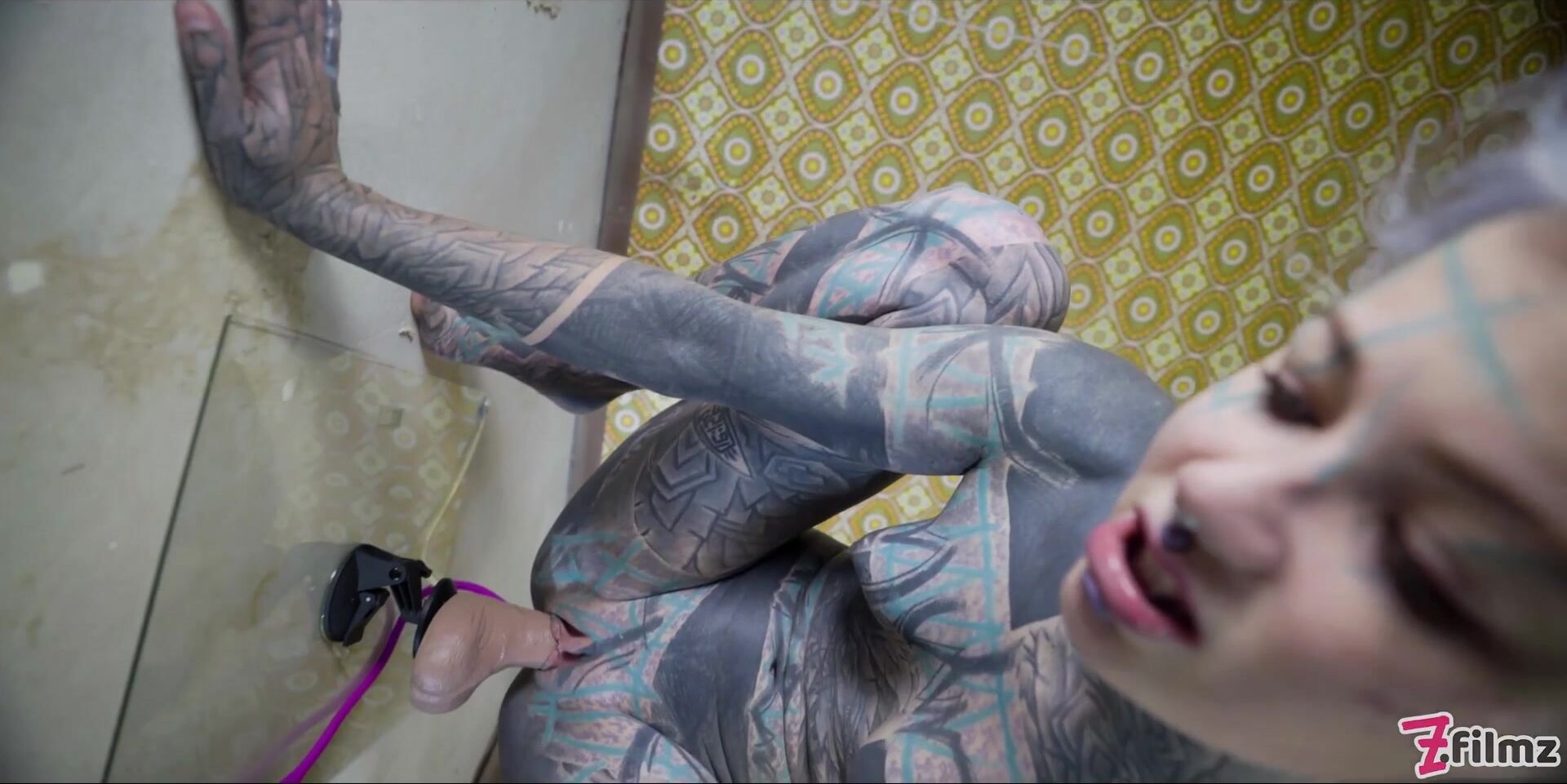Tattooed model Anuskatzz masturbating with a big toy