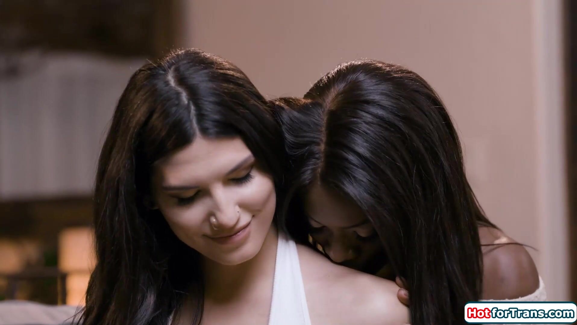 Small tits latin shemale Zariah Aura gets a shoulder massage from her ebony gf Ana Foxxx.The tgirl sucks on her feet before she licks the black babes pussy.The trans deepthroat facefucks the brunette and bangs her pusys with her big tranny dick