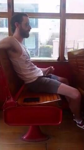 A well-endowed man couldn't resist the urge to stroke his big cock while riding the bus. He tries to hide his amateur public masturbation, but the bulge in his pants gives him away in this outdoor adventure.