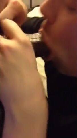 A hungry white guy takes on a big black cock, sucking and slurping with skill and passion. He loves the taste of a thick, veiny shaft and the power of interracial play.