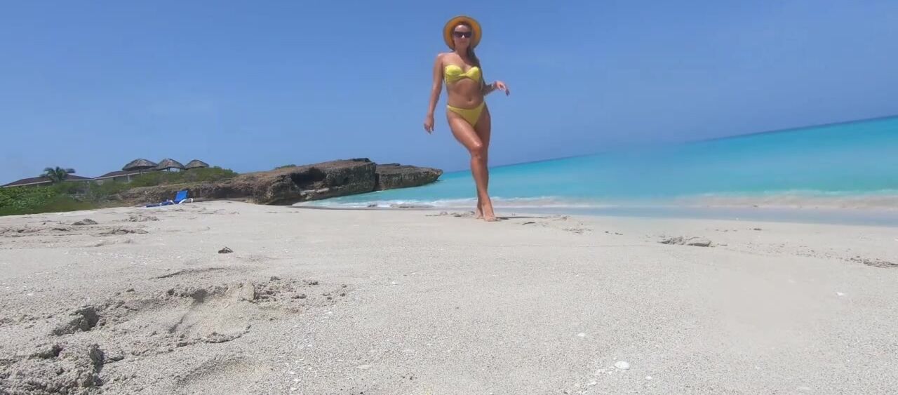 A daring blonde Russian amateur with a big ass goes for a swim in the Atlantic Ocean in Cuba, baring it all in public with a bold exhibitionist streak.