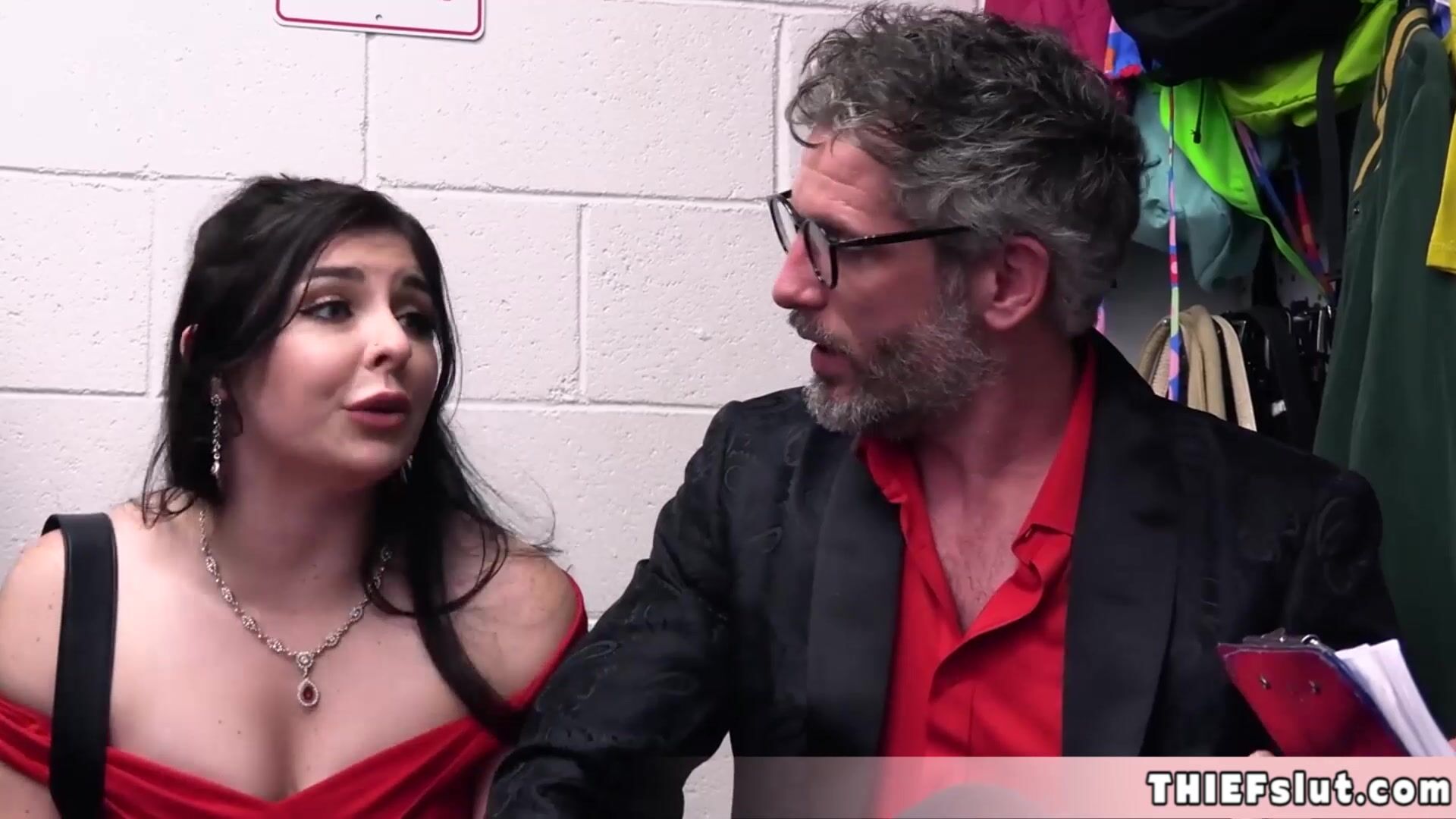 Meaty MILF shoplifter finds herself surrounded by cops in the secret back room of the mall Hubby must watch too
