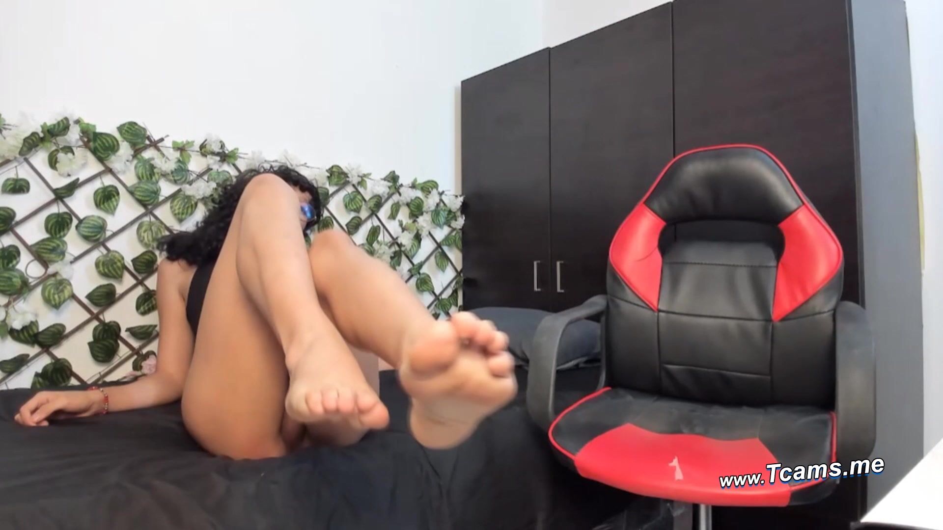 Shemale babe who was a real hottie giving herself a nice hand when her cam focuses on her spread hot legs. This shemale surely knows how to lure and satisfy her viewers. Her groan makes her more sexy and hot to look at. She teases and loves playing her big hard cock and body for her viewers to see. She is so hot that she can totally make you so horny and hard. An incredibly beautiful curly shemale with nice body gives us a sexy hot solo masturbation. Watch her play her cock that will surely make your cocks stiff as rock.