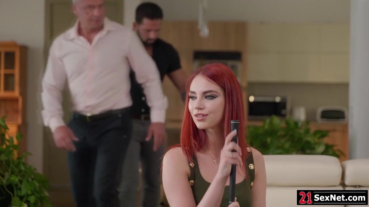Leya Desantis gets naughty on her office workers.She calls them and have them get naked.The lady boss is giving one blowjob while the other is licking and fingering her ass.Wanting for more,she lets them fuck her at once, penetrating her ass and pussy