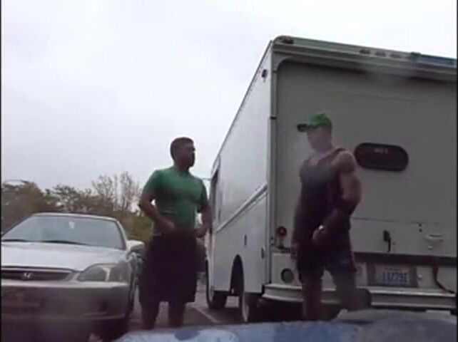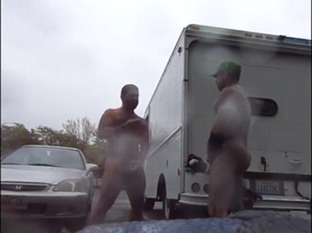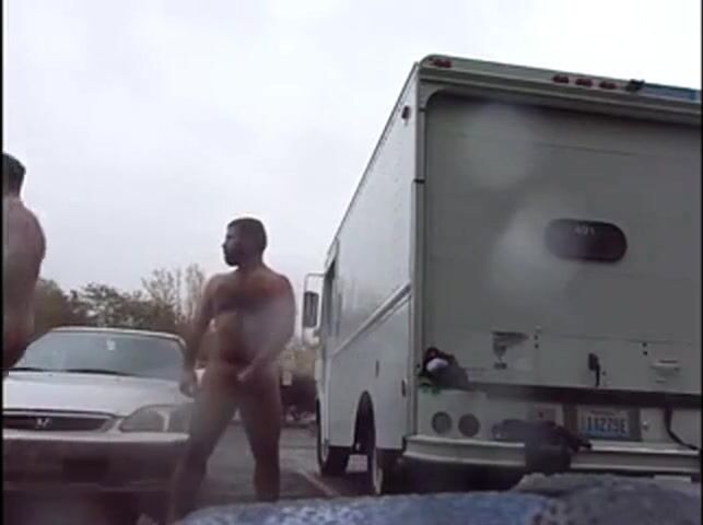 Public Rainy Stroking in a Parking Lot by Two Horny Men