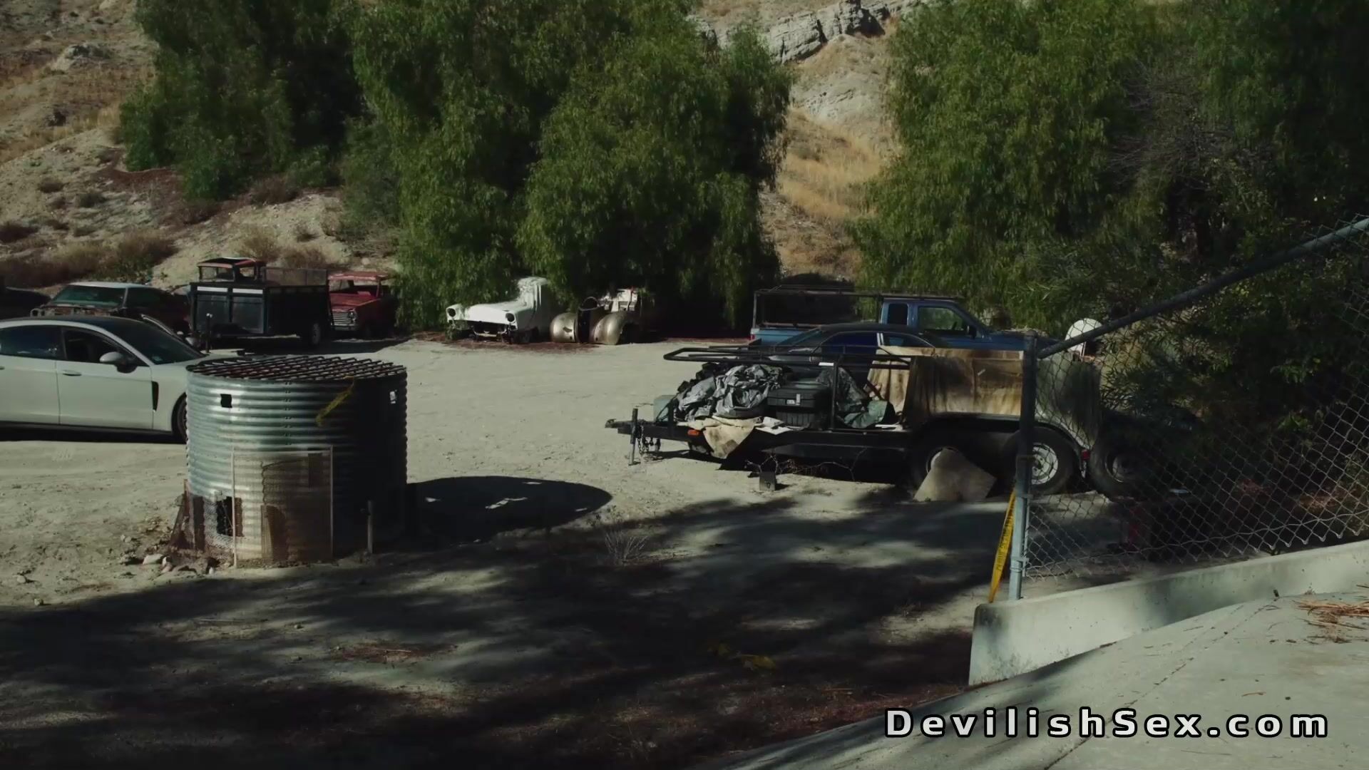 Busty Asian babe Nicole Doshi leans on ladder and gets rimjob from a biker David Lee then rides his big dick in chair in a various positions in a warehouse