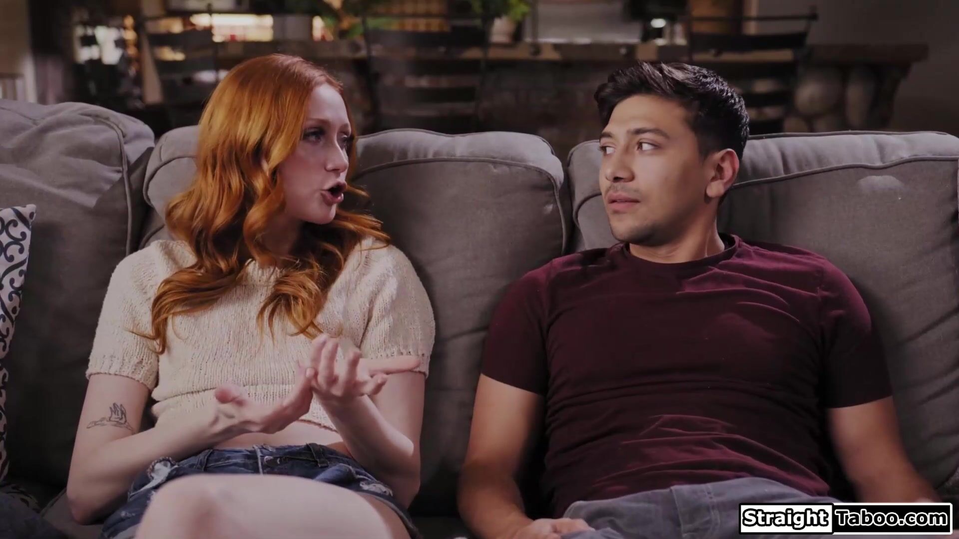 Stepbro Max Fills and stepsister Scarlet Skies decide to team up and piss off stepmom.She wanted them to bond so these two steps decide to fuck.The petite redhead sucks his cock and he licks her pussy.While they are banging their stepmom walks in