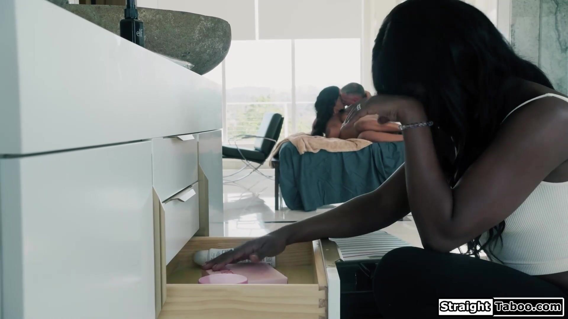 Ana Foxxx is done with her bf and comes to collect her stuff.She finds busty ebony August Skye naked and cant believe they start making out ifo her.The big tits black babe sucks his cock while his ex is packing and enjoys being banged while she sees
