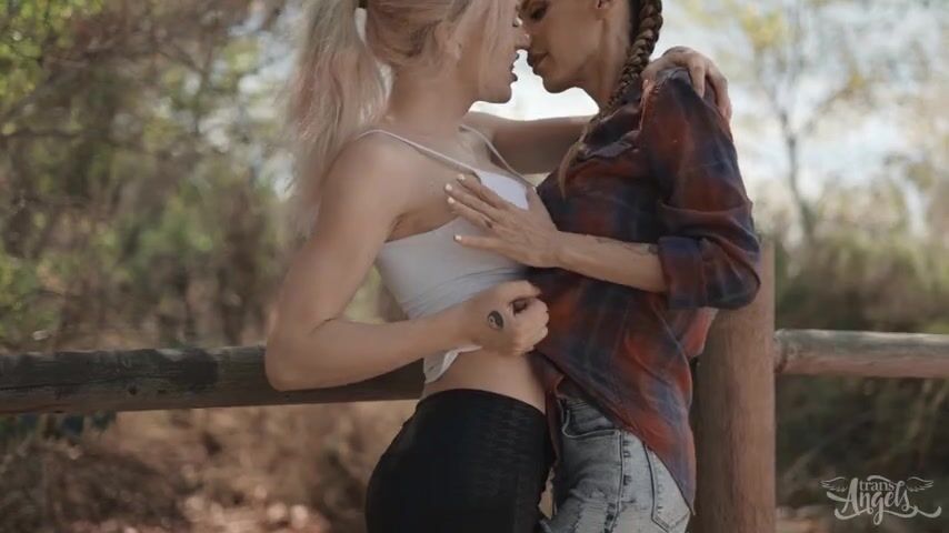 Blonde Shemale Fucks Brunette Girl