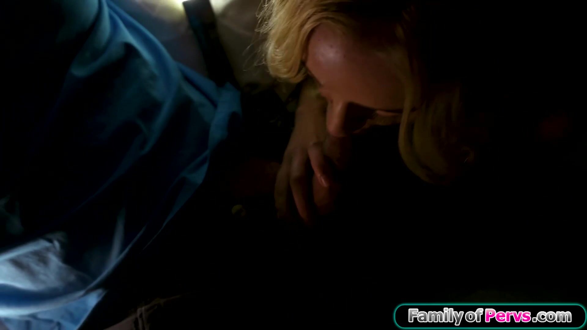 The lights went out again and small tits stepdaughter Skylar Storm has a great idea to pass the time.The horny blonde wants to suck off her stepdaddy.She feels him up and deepthroats his big cock.She shoves her shaved pussy on it and rides it