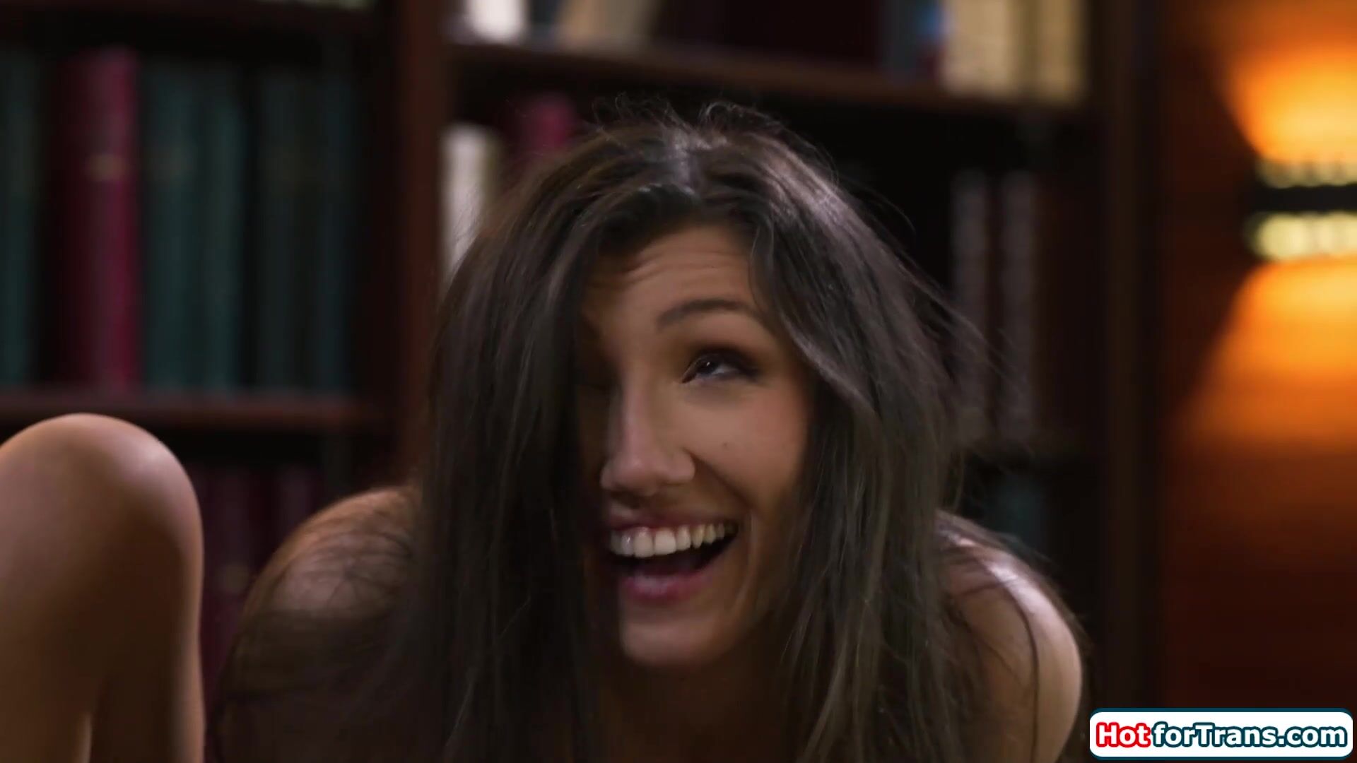 Busty tgirl Ariel Demure is up for a quickie in the library with her small tits petite girlfriend Maya Woulfe.The shemale eats her out and fucks her.The brunette babe deepthroats the tranny dick and gets her pussy licked before being doggystyled