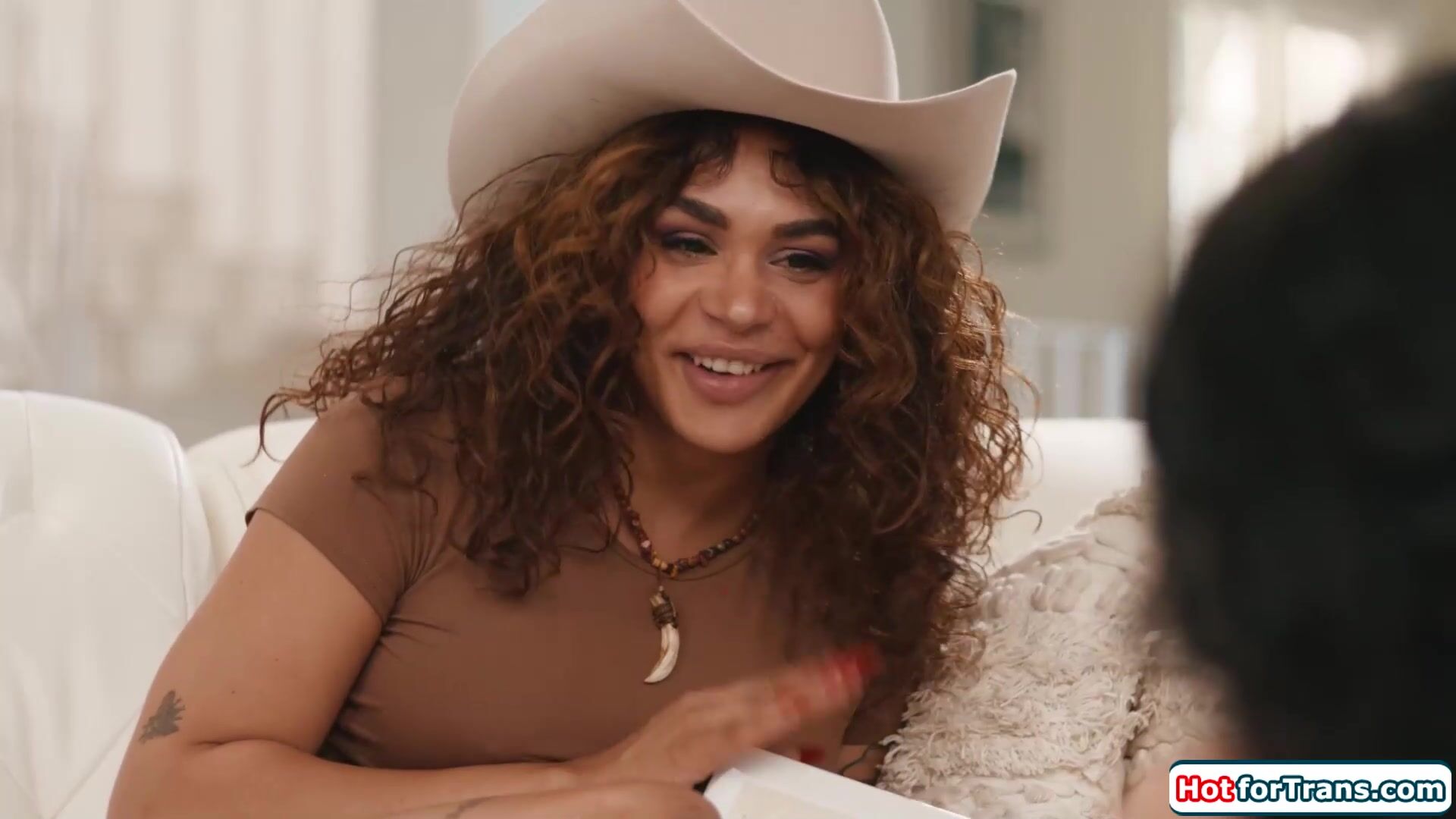 Big tits latin shemale Eva Maxim cant keep her eyes off of her gfs busty stepdaughter Queenie Sateens ass.The brunette kisses the tgirl and sucks on her boobs before deepthroating her trans cock.After shes licked by the latin tranny she gets fucked