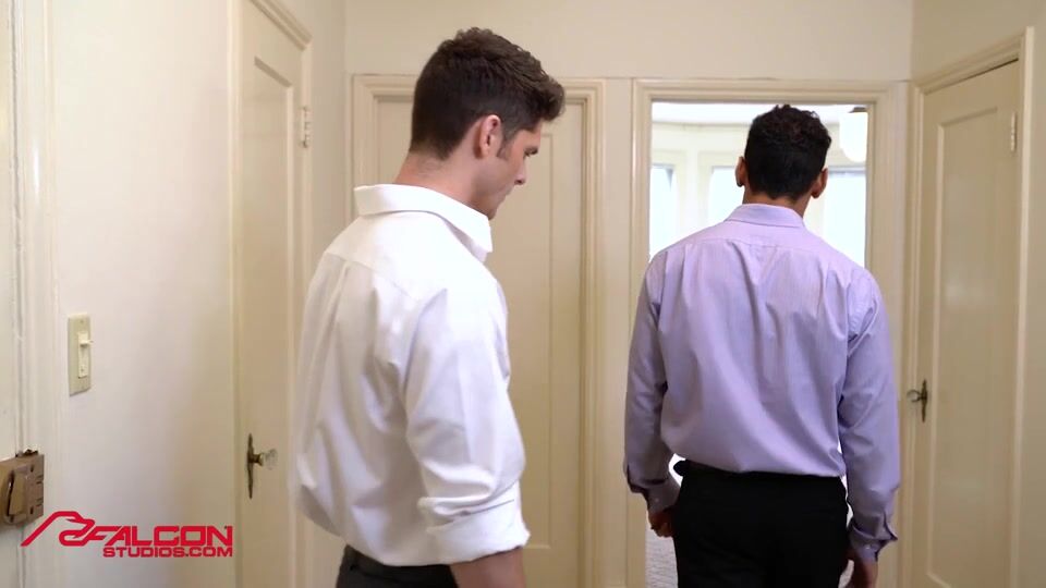 Interracial threesome bareback banging at the back office