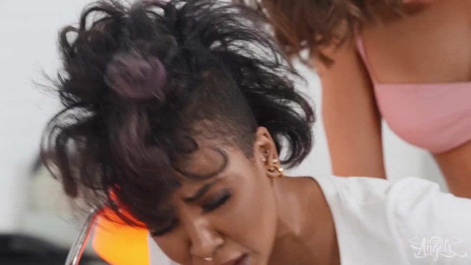 Busty shemale Ariel Demure asslicks and fucks an ebony girl