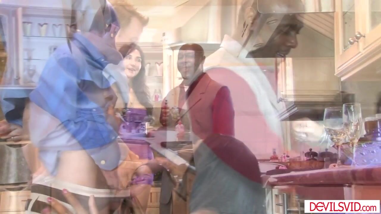 Ebony Rane Revere prepares a meal when suddenly her best friends husband Mark Wood starts caressing.Diana Prince caught them and so she doest the same with her bffs black husband.The dudes take them to the sofa fucking each others wife side by side.
