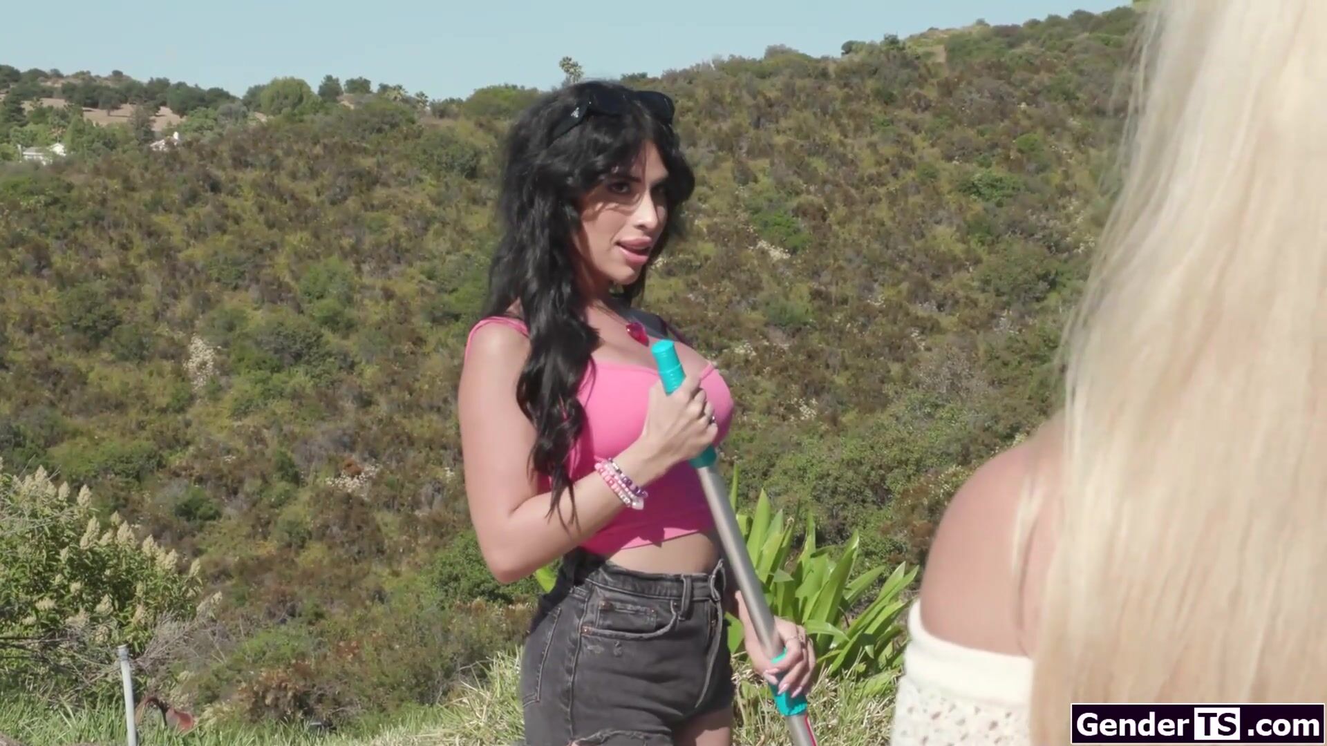 Coed River Lynn catches busty tgirl poolbabe Avery Lusts eye when sunbathing in her bikini.The shemales dick pops out of her shorts and intrigues the babe.The latin trans licks pussy and gets her tranny dick deepthroated before she bangs the blonde