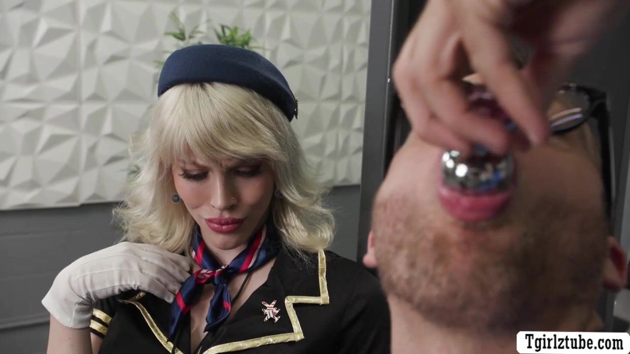 Airport security caught their TS flight attendant bringing sex toy on her luggage bag.Instead of arresting her,he lets her throat his big dick passionately and bareback fuck her ass in return.Go to Tgirlztube.com for discount and more.