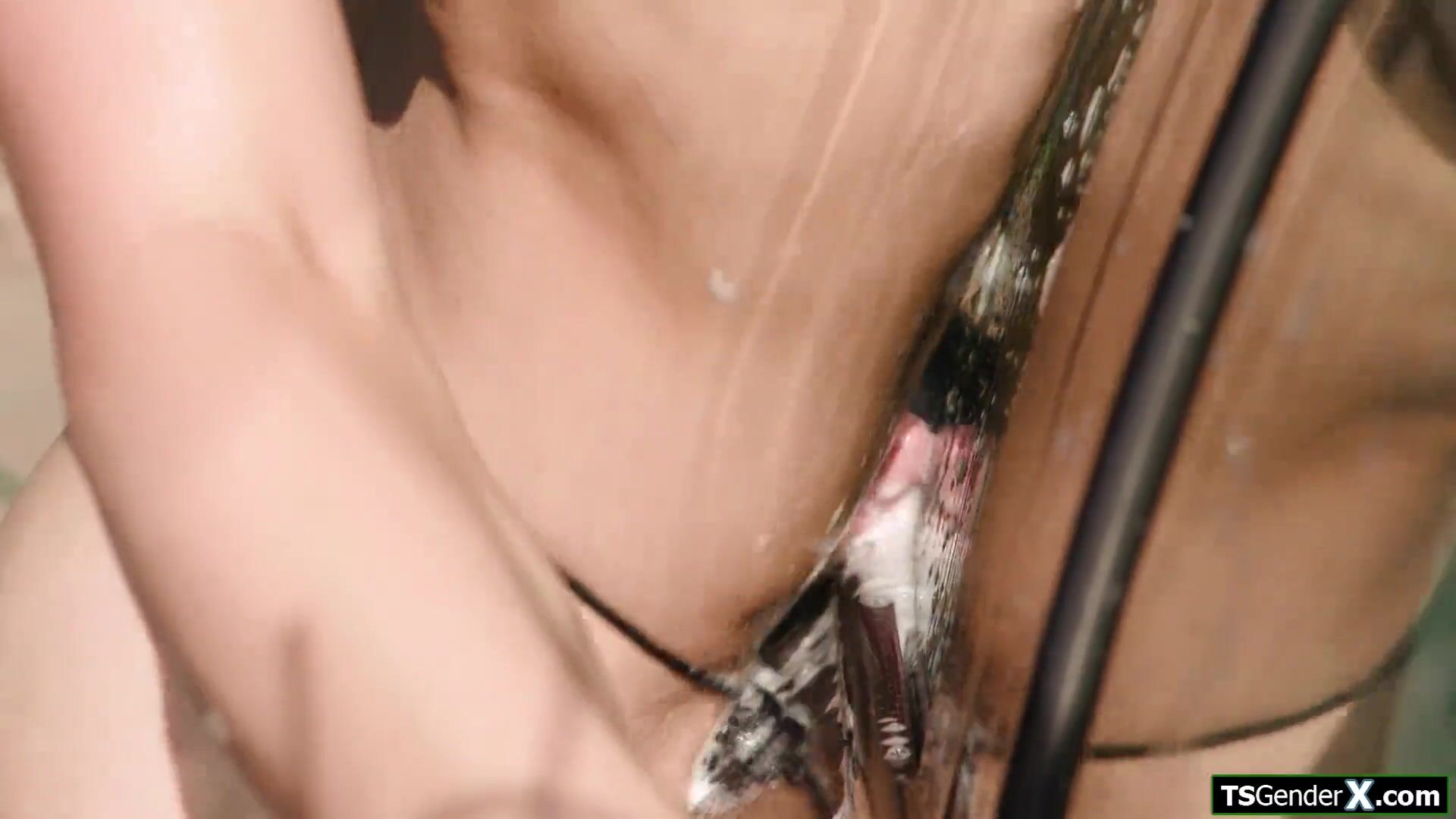 Tgirl Emma Rose gives carwash n blowjob