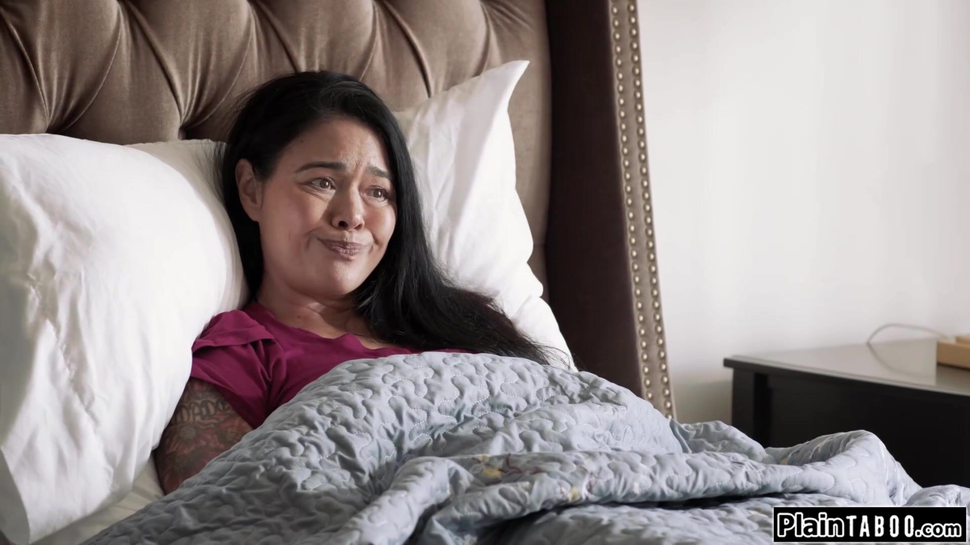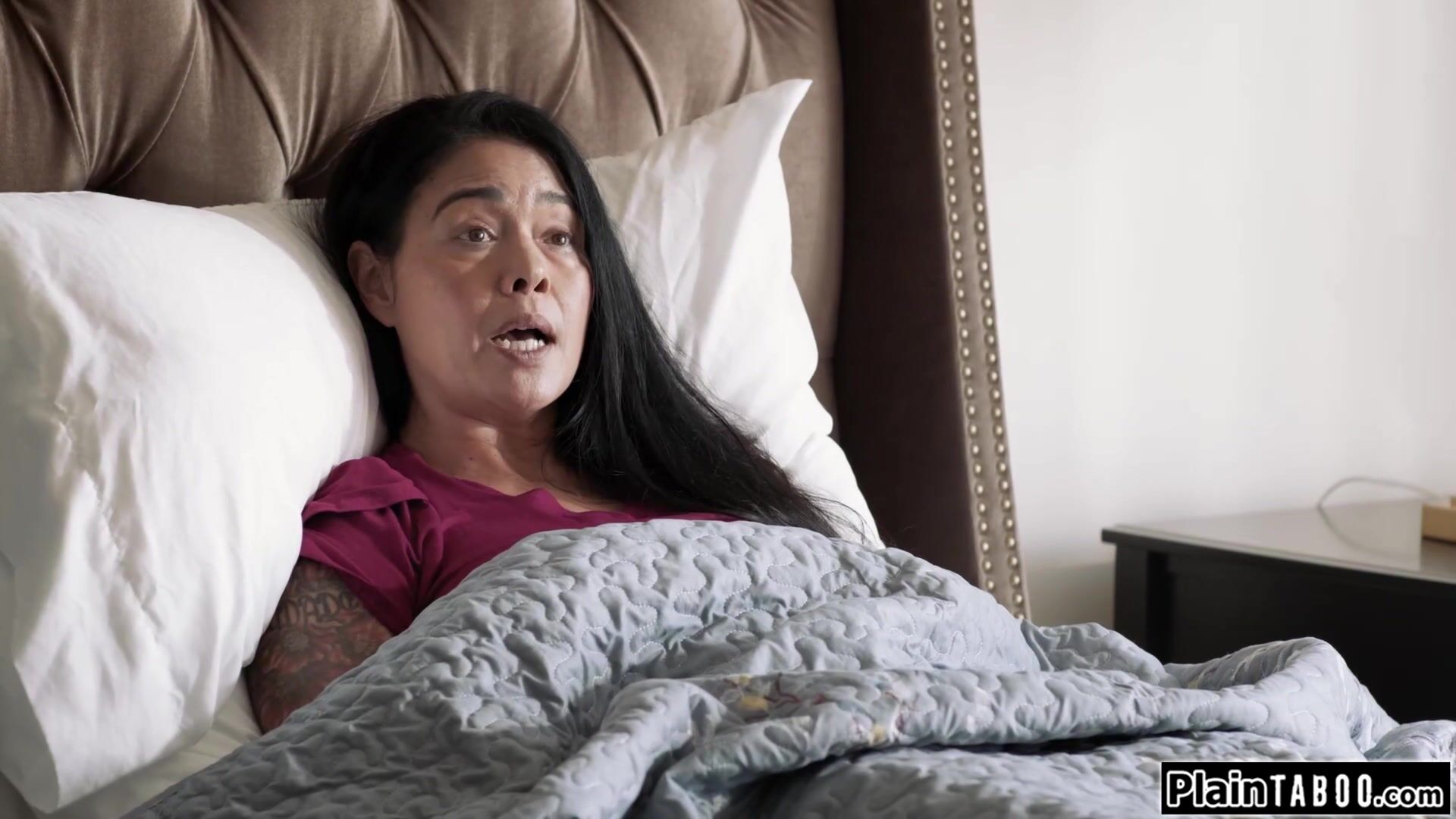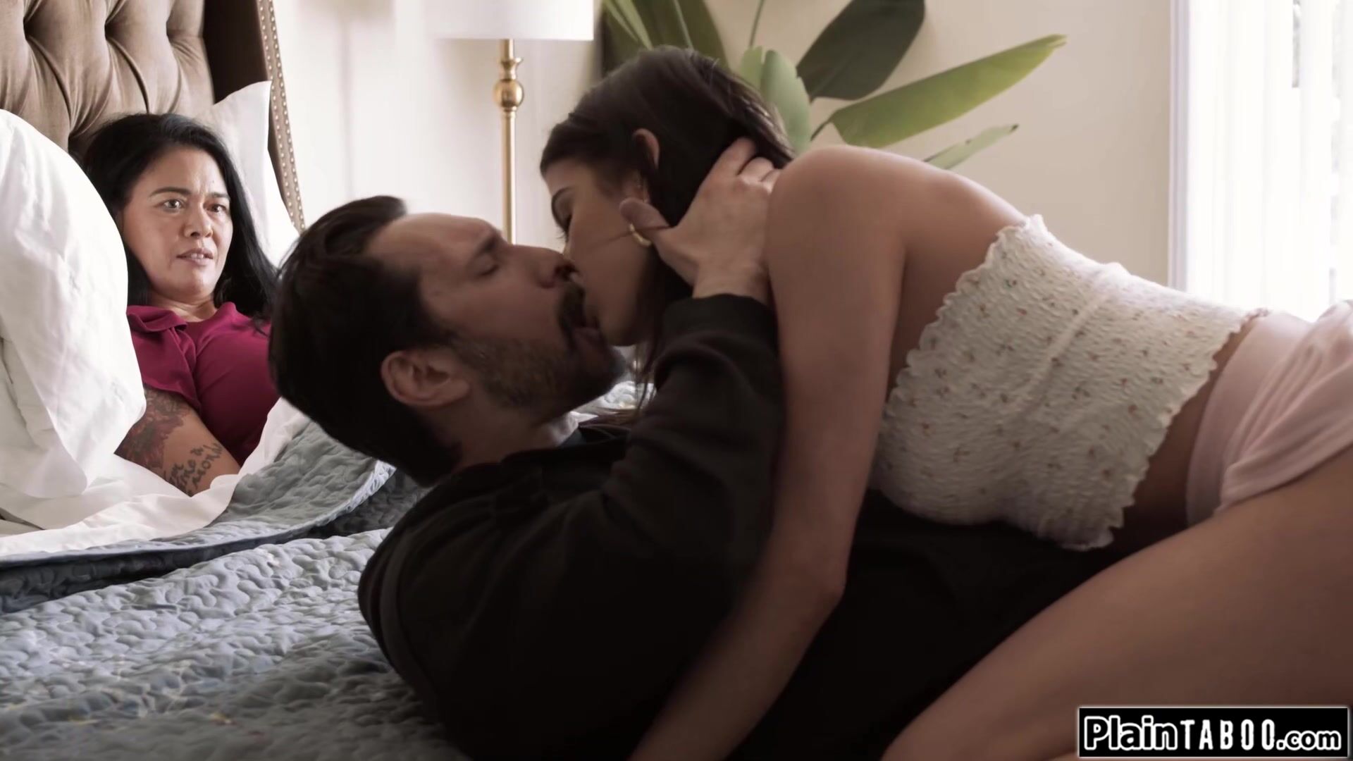 Stepdaughter Kylie Rocket will do anything for her bedridden asian stepmom Dana Vespoli.The petite teen has invited a former date over to have sex ifo her.The petite latina is kissed and pussy licked.The brunette gags on his cock and rides it