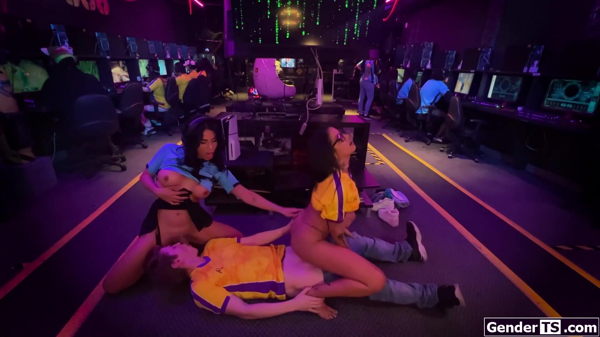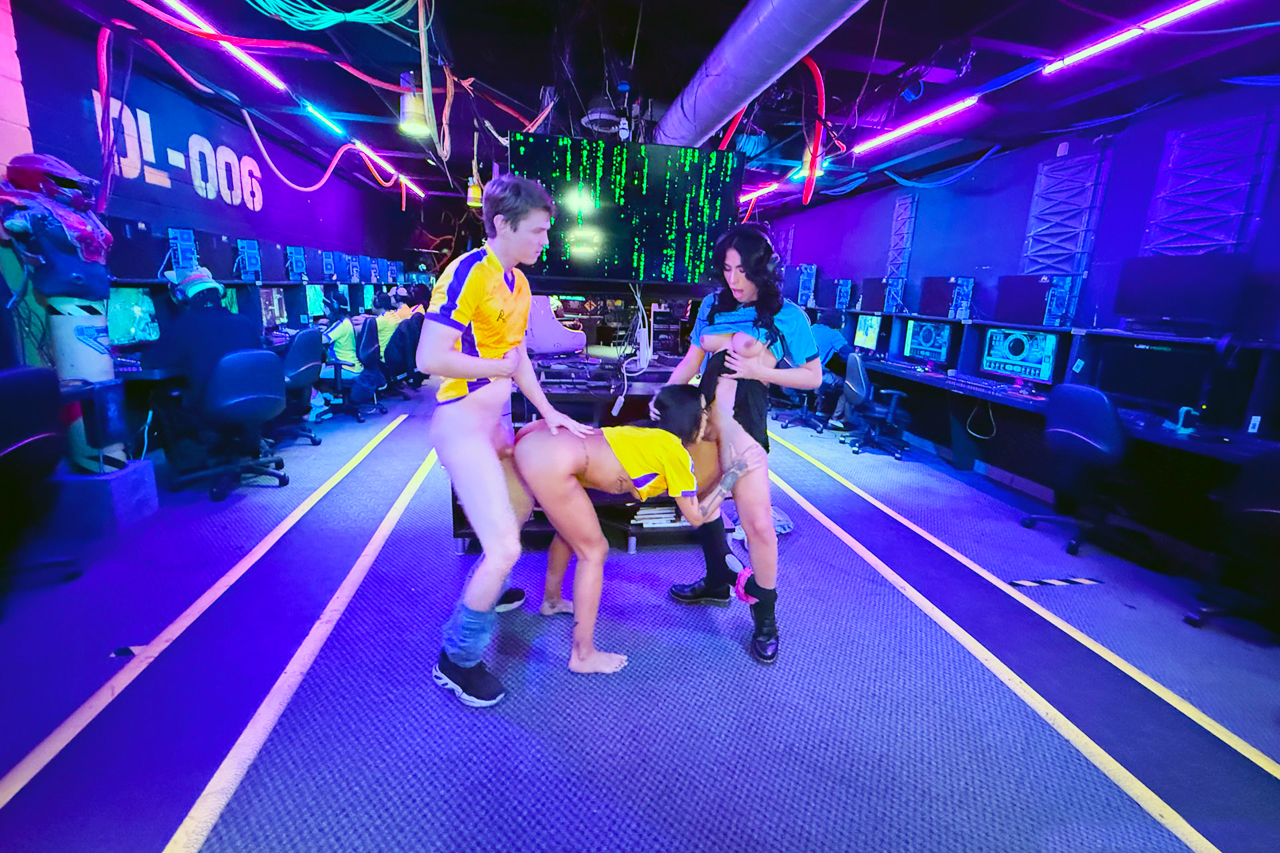 Trans Esports player Avery Lust is distracted by competitors cock in her mouth.The guy anal barebacks the busty latina and theyre joined by Nina White.The big tits brunette shemale is sucked off by the petite babe who gets her shaved pussy banged