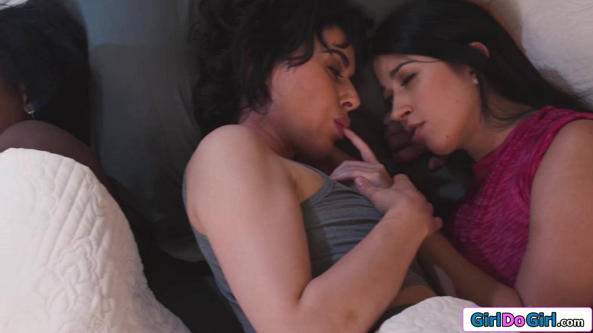 Lesbian couple fool around next to bff