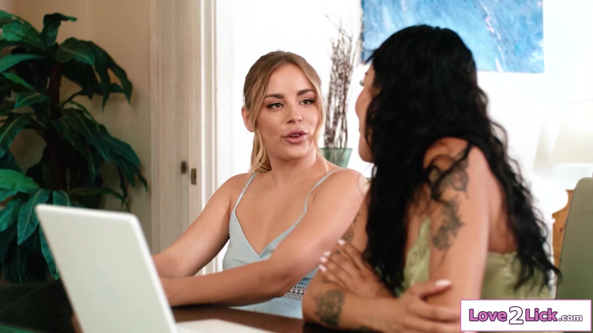 Latin Vanessa Sky is ashamed her new roommate Anna Claire Clouds found her porn history.The petite blonde makes her move and kisses the tattooed latina.The brunette sucks on her small tits and is pussy licked.Anna facesits and rims her before they 69