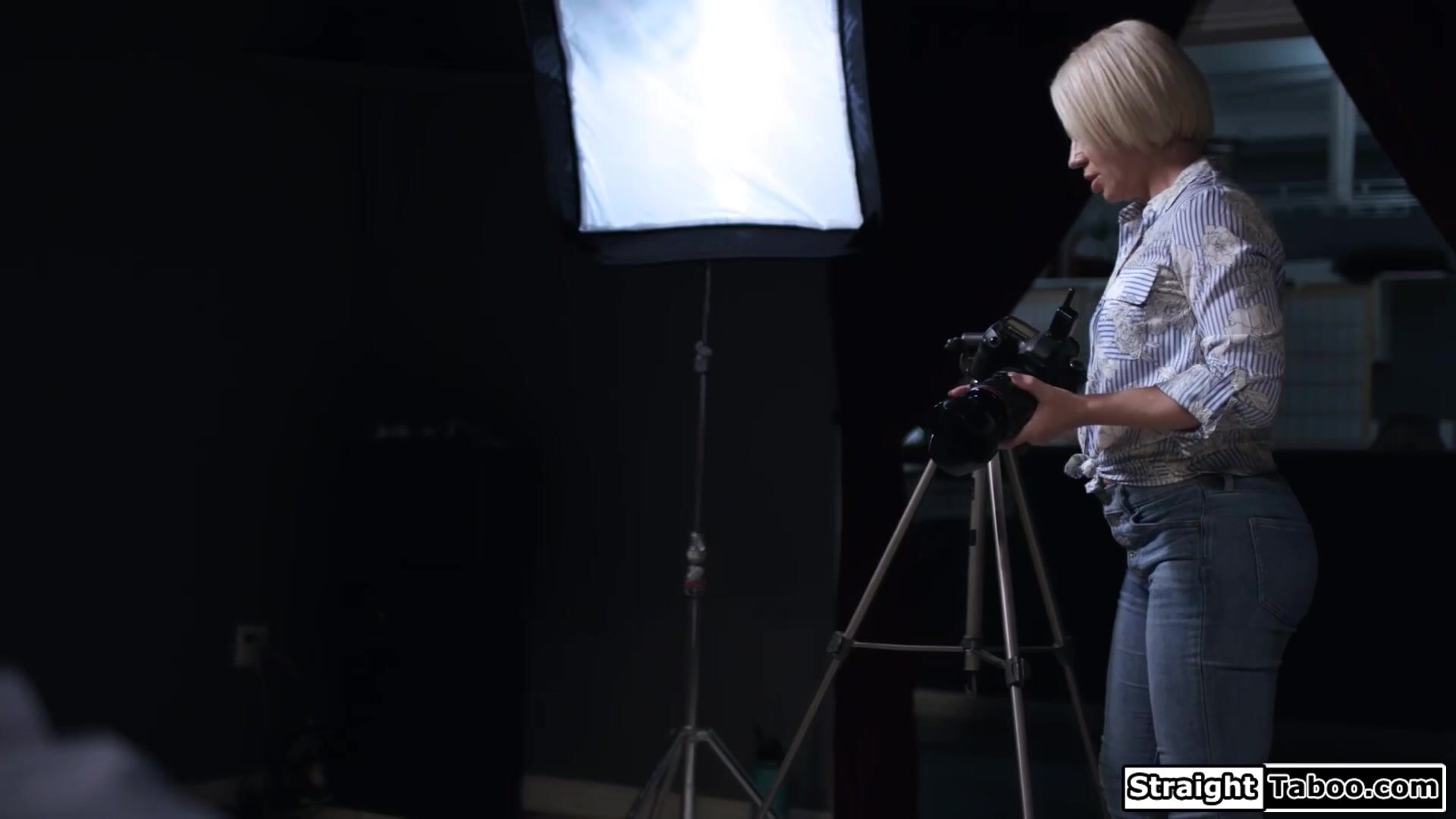Mature photographer Helena Locke is a bit uncomfortable when her client unbuttons her blouse.He kisses the milf and she gives in and lets him suck on her small boobs and lick her pussy.The blonde gives a deepthroat blowjob before being banged