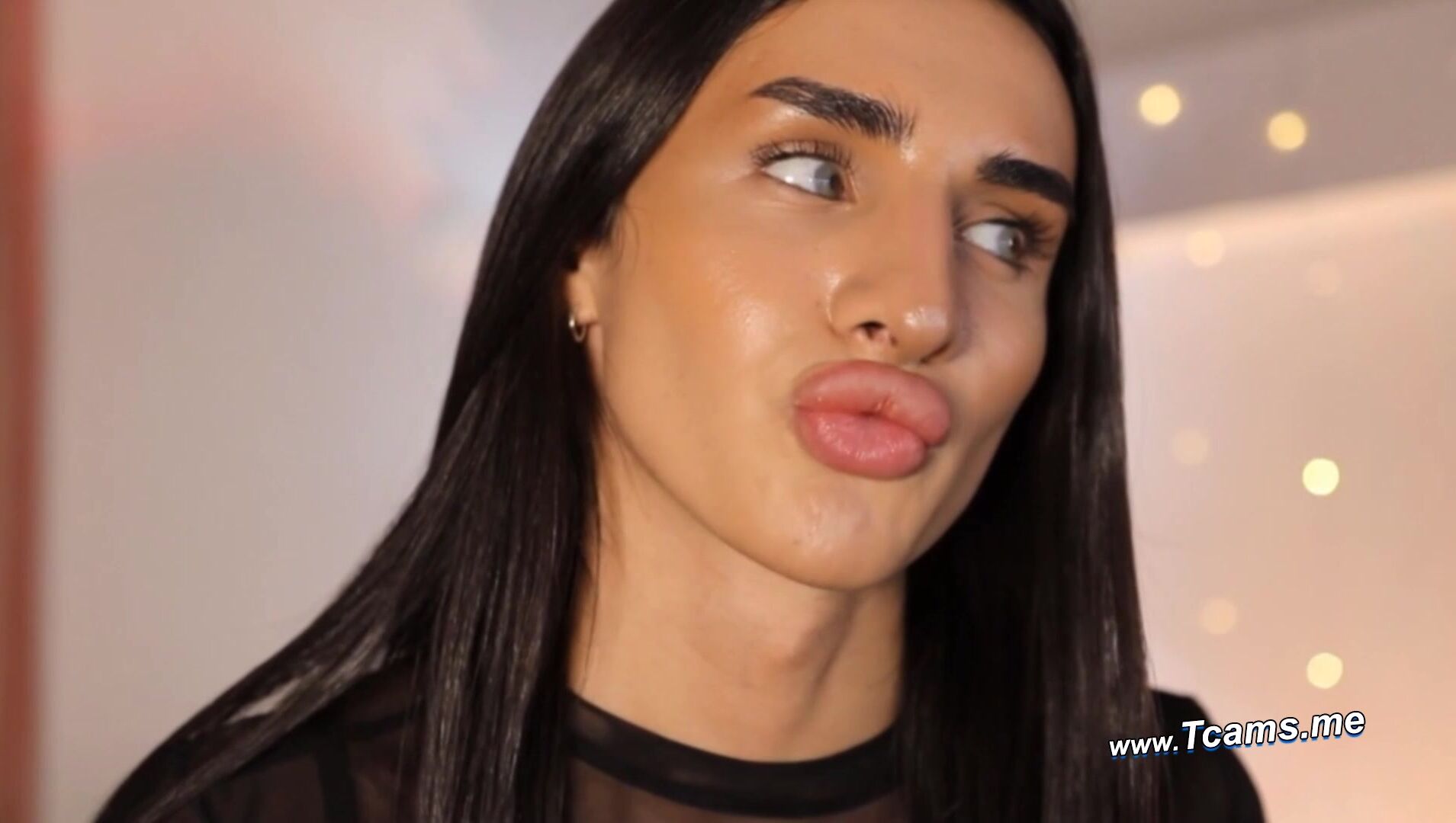 Sultry Latina Shemale Strokes Her Massive Cock on Cam