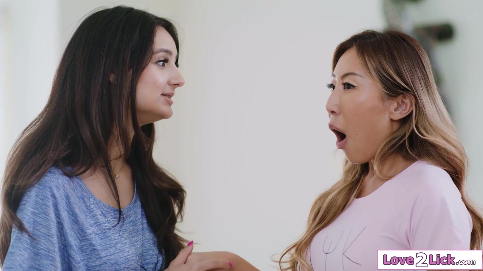 Sorority leades Kyler Quinn and Eliza Ibarra seduce the rival asian lackeys Kimmy Kimm and Nicole Doshi.The lesbians agree to a fucking foursome.The babes line up to lick pussy and rim ass.The busty asian and the busty latina facesit the teens