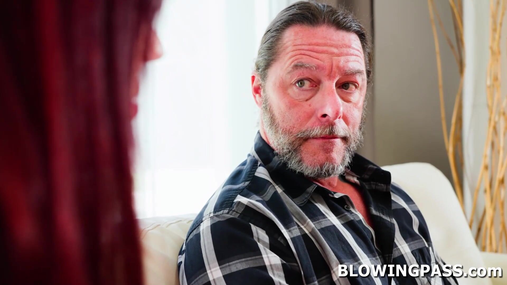 Redhead milf hired guy to give blowjob