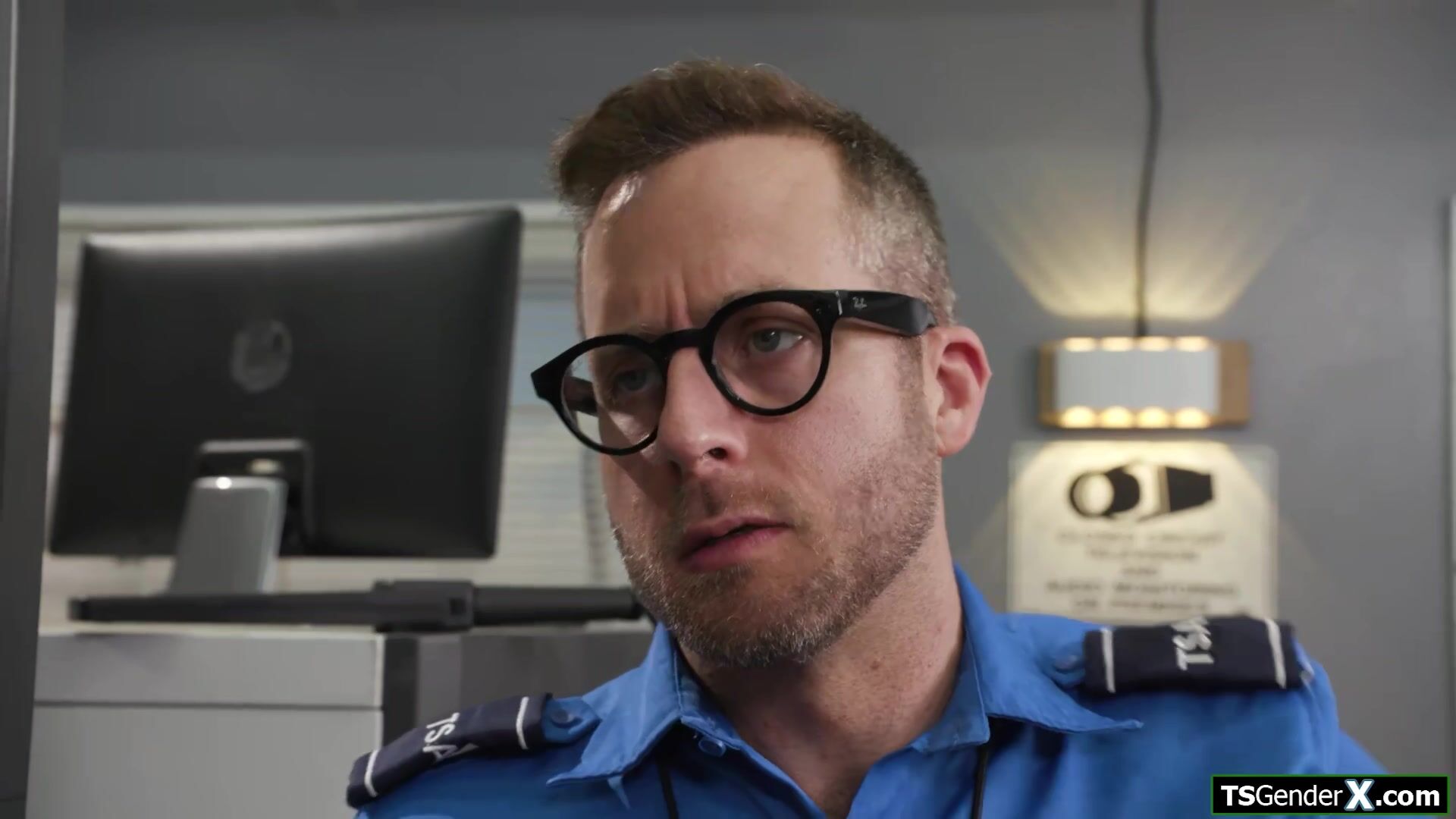 Busty tgirl flight attendant Izzy Wilde is worried now that she needs to go through the metal detection.The shemales butt plug got detected.Security will replace it with his cock but first the tranny sucks him.The blonde trans is anal barebacked
