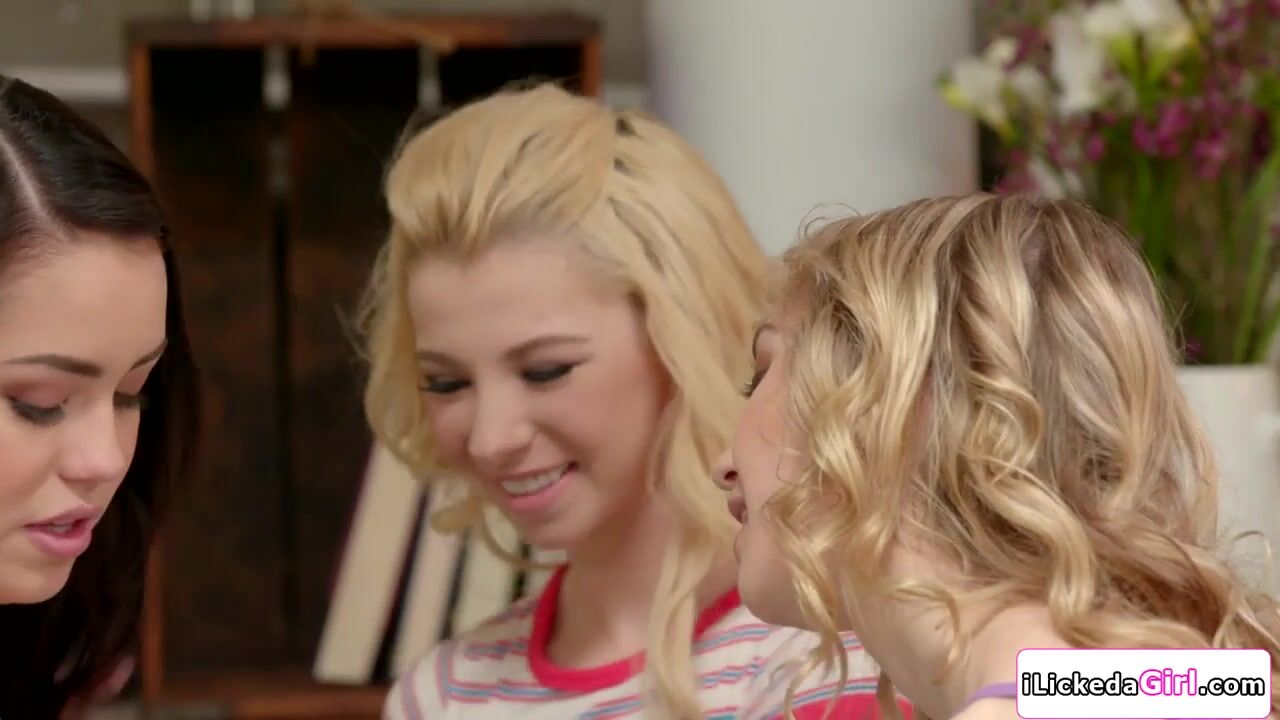 Brunette teen Alina Lopez and her gang Kenzie Reeves and Mackenzie Moss are doing housekeeping as side jobs.The two got bored and started kissing.She joins them and lets them suck her tits.Alina is tongue fucking Kenzie then makes her squirt.