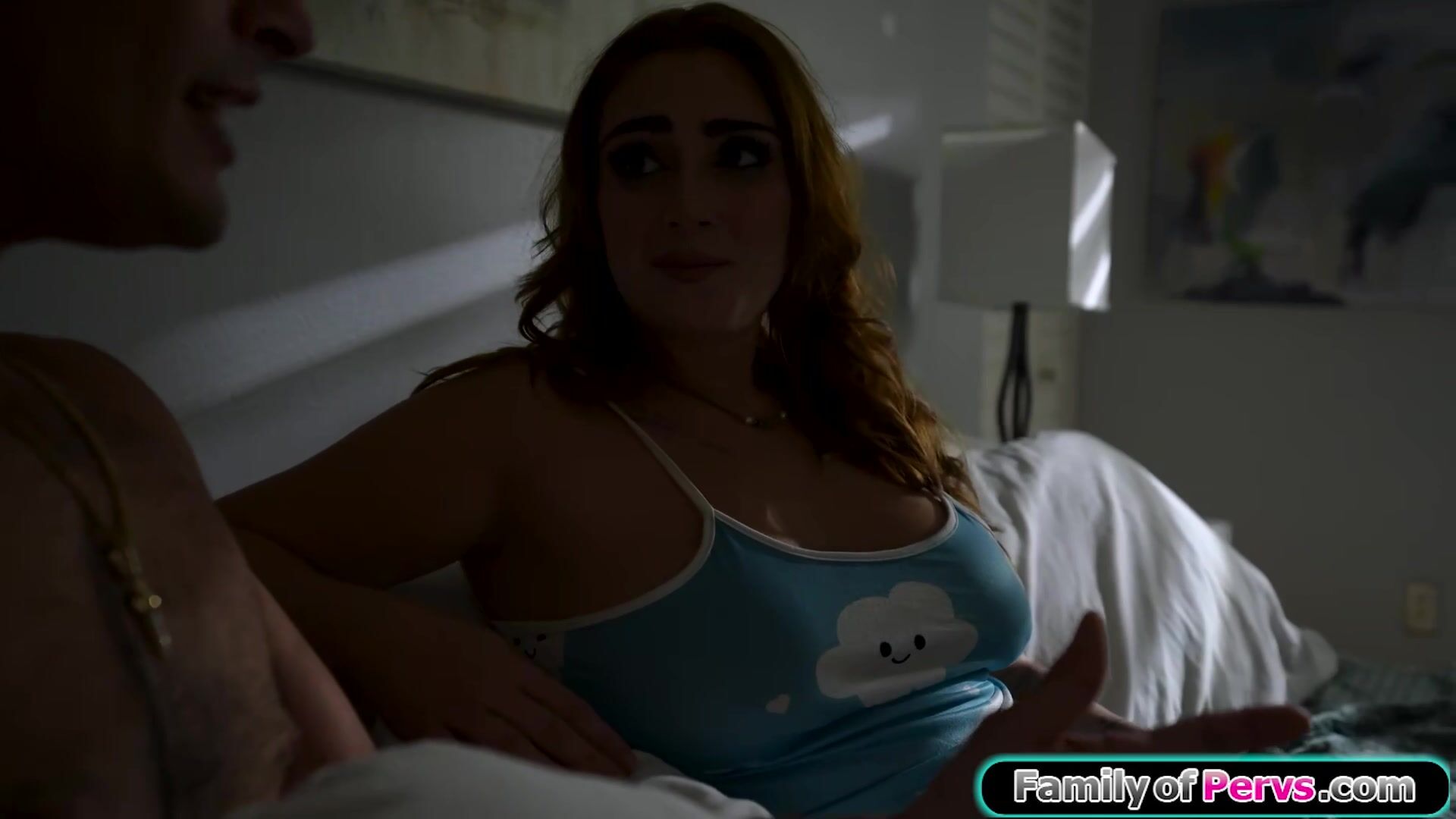 Busty redhead stepsister Kira Fox has the hots for her new stepbrother and lets him suck her big tits.The petite ginger is is fingered while she sucks her stepbros big cock.On her back she gets her hairy pussy thoroughly slammed by his boner