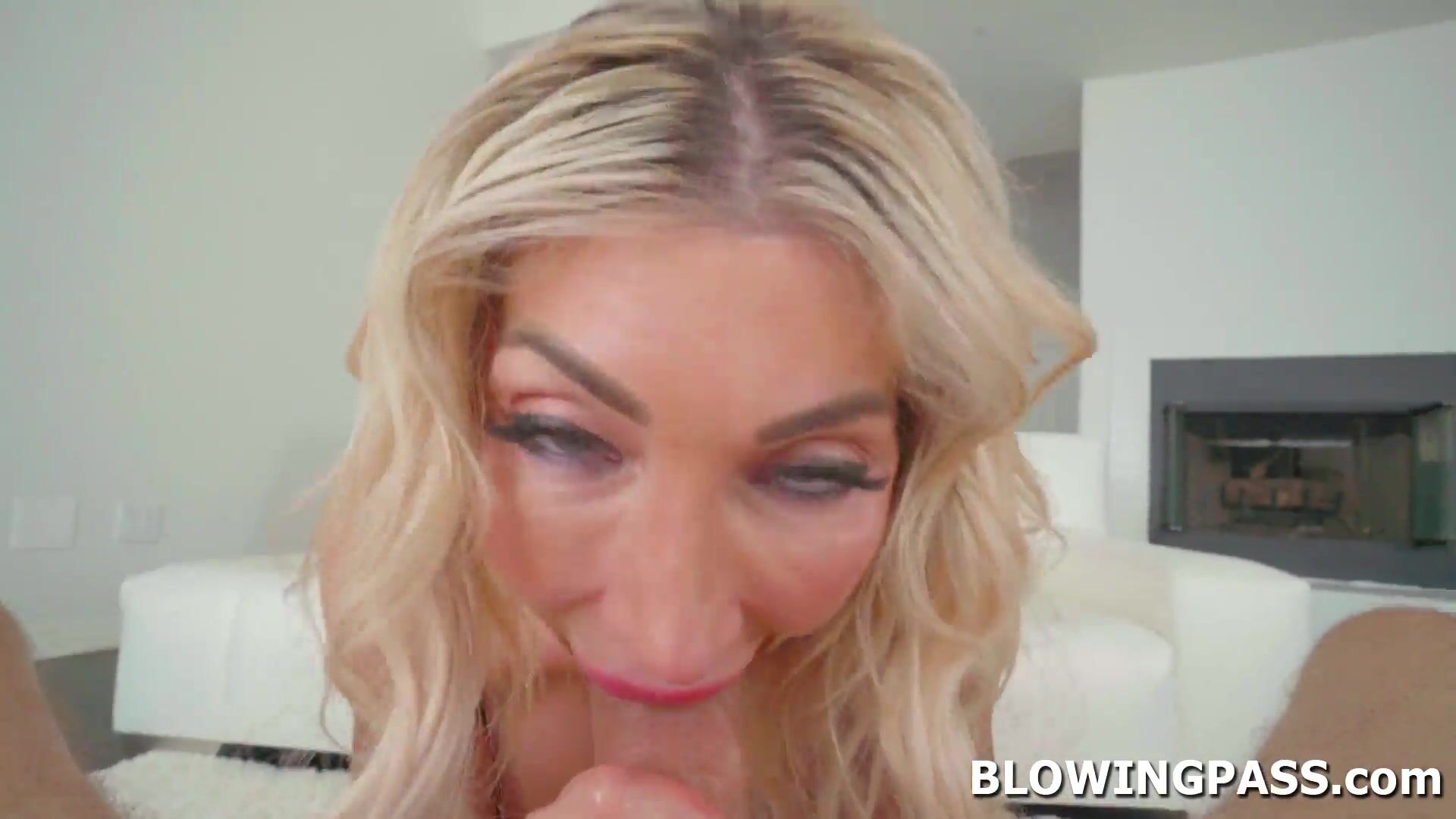 Big tits milf Brianna Dymond is so ready to suck some big cocks. She is flexing her ass then lies down and starts fingering her wet shaved pussy. The busty blonde is ass licking her guy before deepthroating his big dick and gets face fucked.