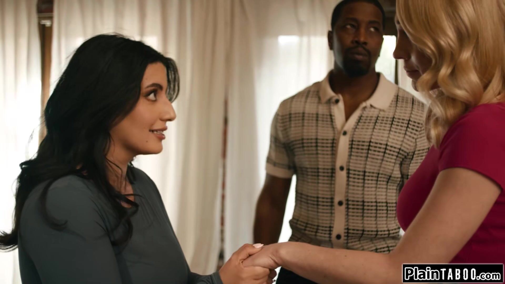 Isiah Maxwell is shocked when his busty wife Sarah Arabic hands him the divorce papers ifo her new gf Lily Labeau.They need to fuck for his signature.The lesbian is facefucked by his bbc and facesits her banged gf before she gets her first dick in