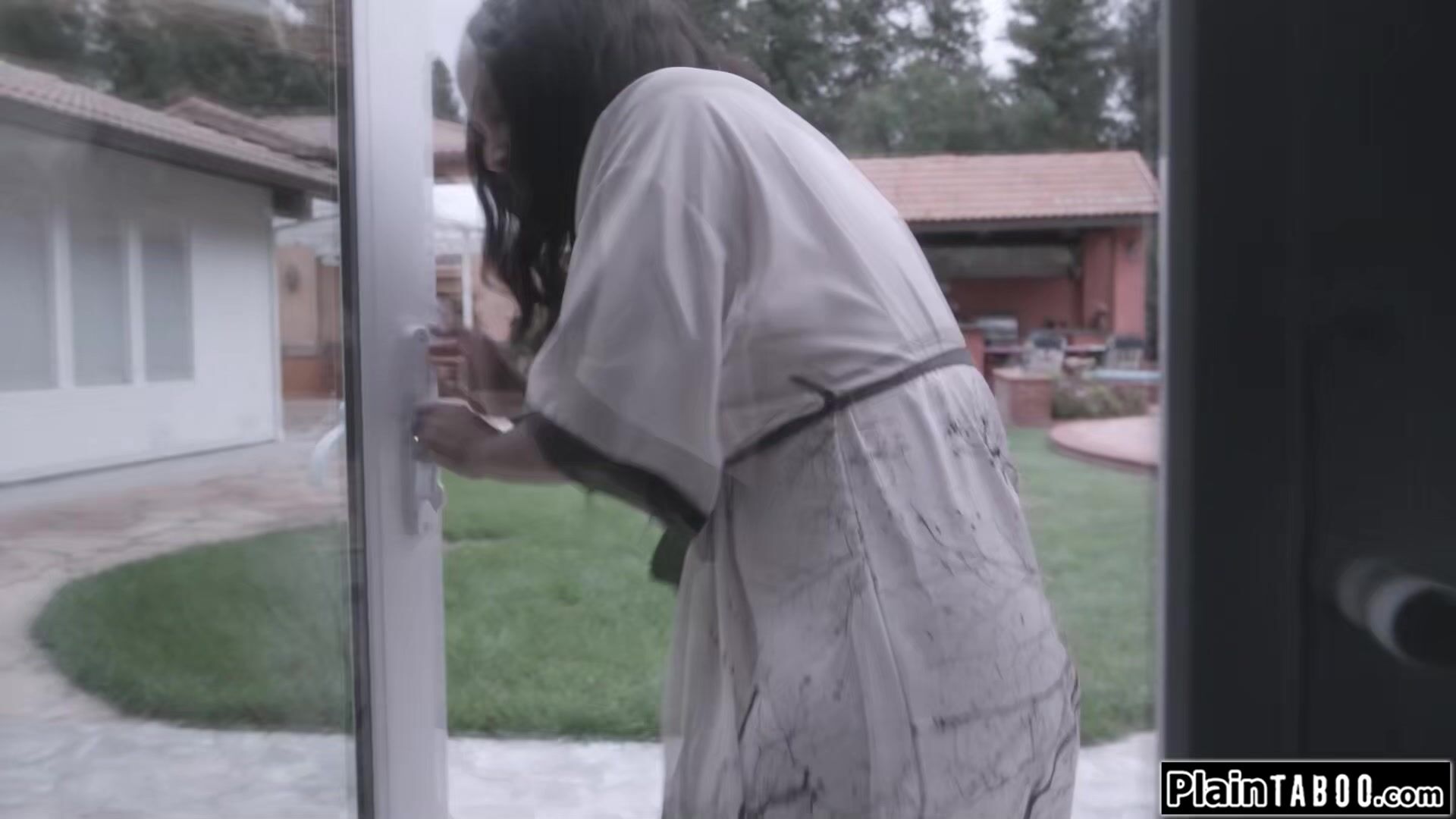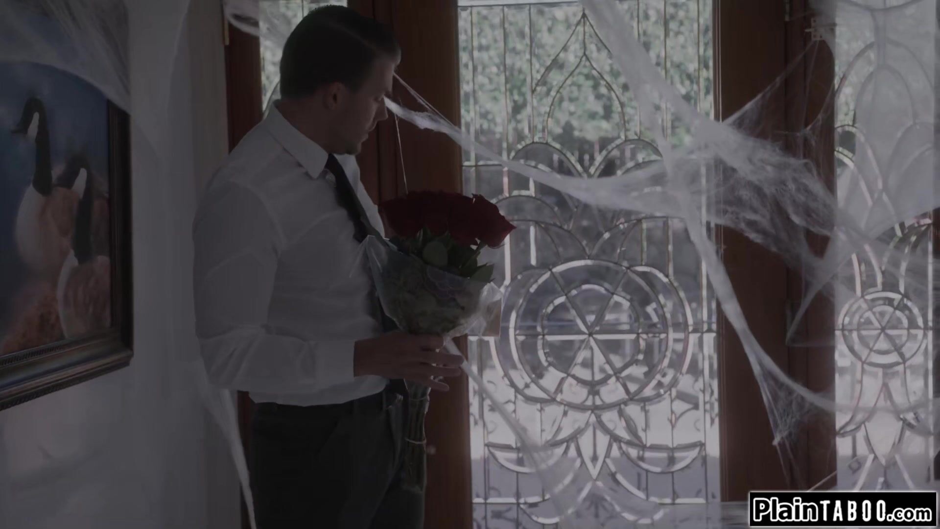 Husband comes home to his house full of cobwebs.Hes shocked when he sees his ebony wife August Skye turned into an arachnid and sucking her cocooned teen neighbor.He tries to make a deal to get them free and they agrees to fuck the busty milf spider