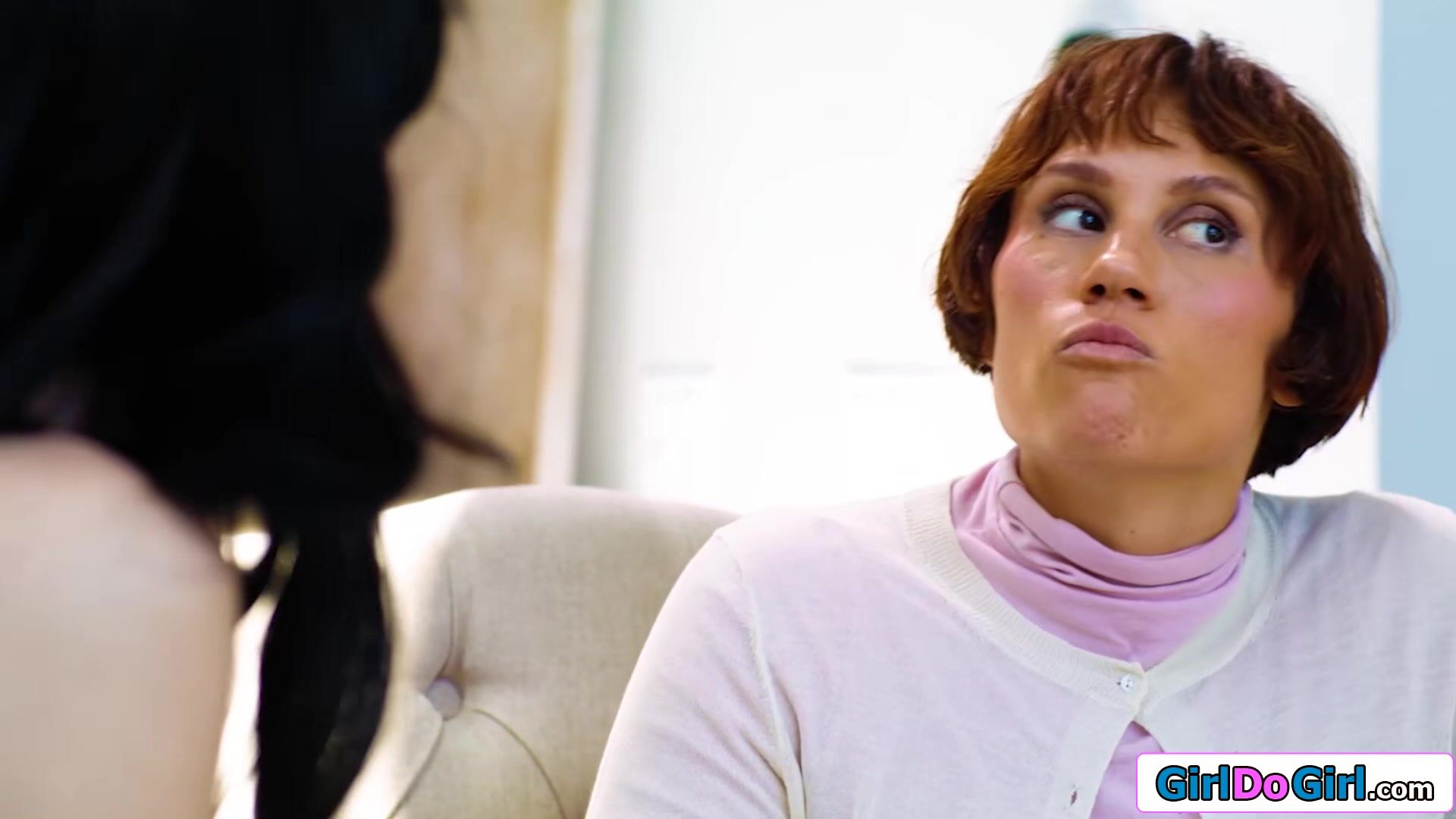 Busty stepmom Lexi Luna and stepdaughter Bella Nova are fucking a lot lately and think they can squeeze the strapon in before the social worker shows up.During the meeting the teen rides the toy.Afterwards the big tits milf licks pussy and is rimmed