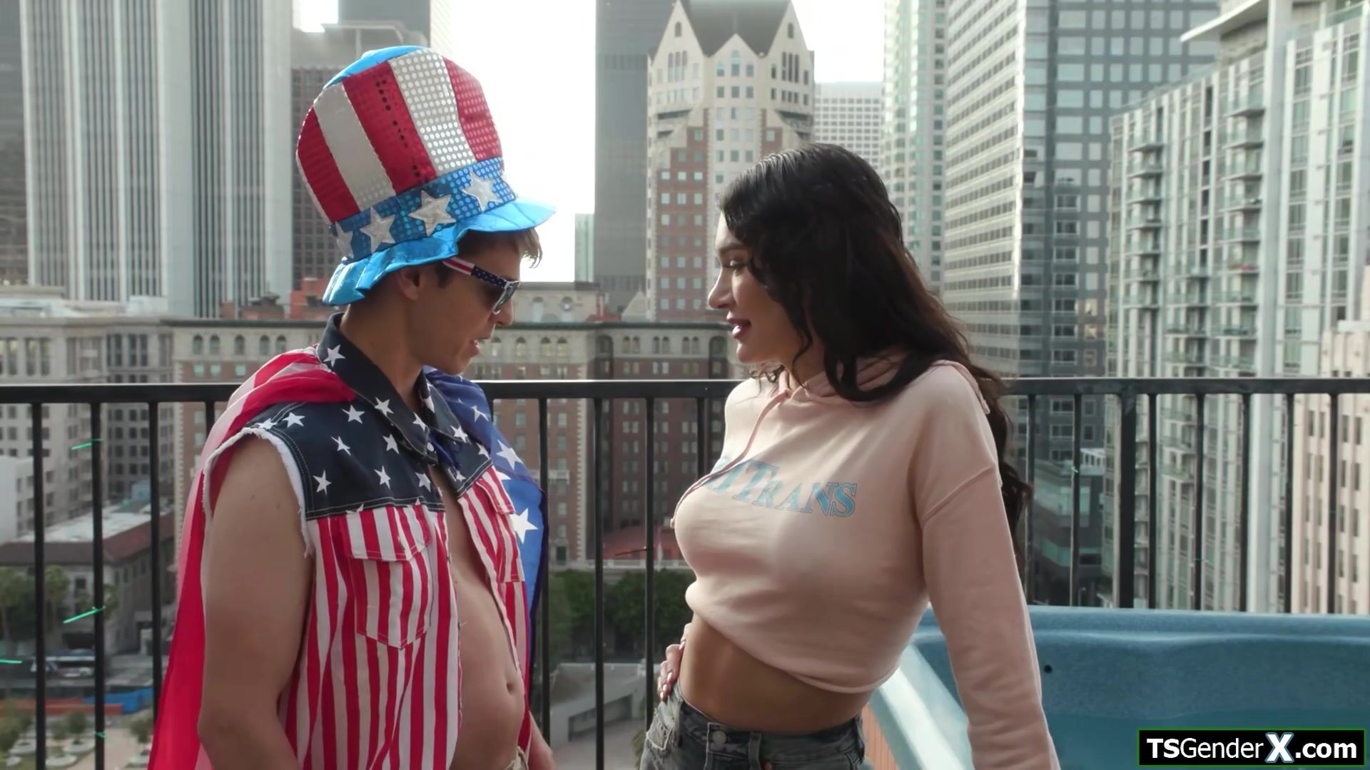 I really dig tall trans women with big boobs and hard cocks.Busty shemale Andylynn Payne fits the description and lets the guy deepthroat her mighty trans cock.The tranny sucks and anal rides while being jerked off.The tgirl the barebacks the dude