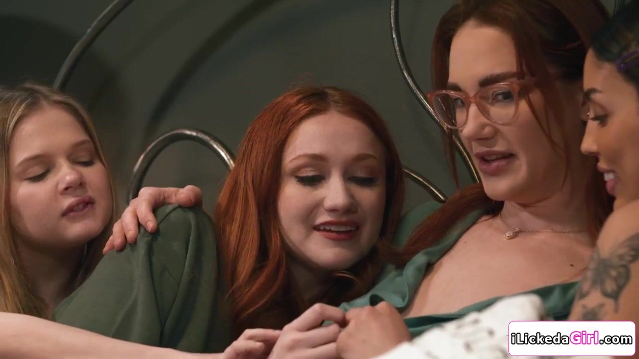 Scarlet Skies and her bffs Vanessa Sky and Coco Lovelock flock into her stepmoms bed after a horror movie. Milf Siri Dahl shares her bed when suddenly the teens starts caressing her big tits. They lick her pussy while her stepdaughter is facesitting.