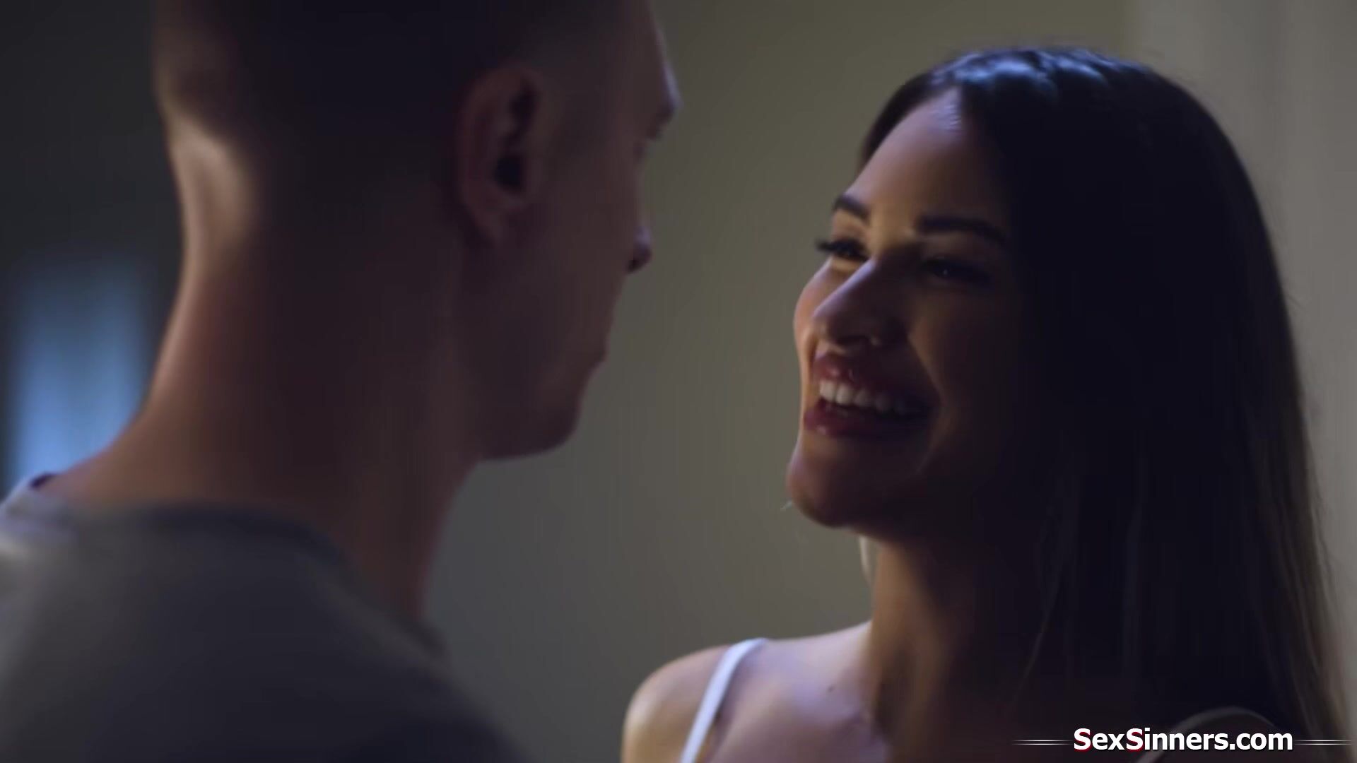 Teen Gizelle Blanco catches her gfs stepbrother peeking.She leaves the bedroom and finds his dick hard and takes his big cock in her mouth in the hallway.She throats and lets him lick her pussy.With her gfs in the next room the sexy beauty rides dick